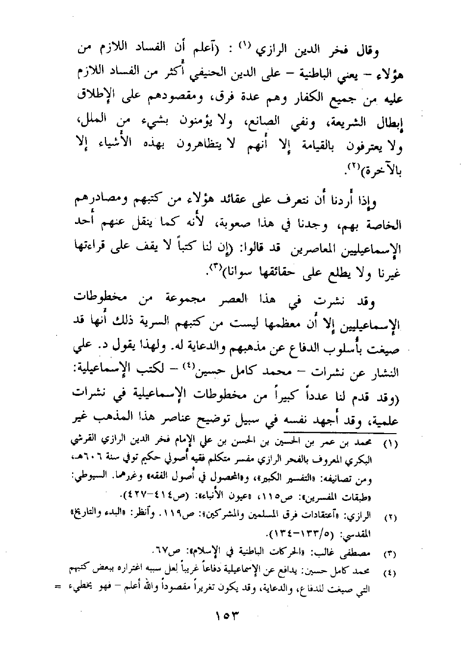 (¬4) محمد كامل حسين: يدافع عن الإسماعيلية دفاعاً غريباً، لعل سببه اغتراره ببعض كتبهم التي صيغت للدفاع والدعاية، وقد يكون تغريراً مقصوداً والله أعلم - فهو يخطئ =