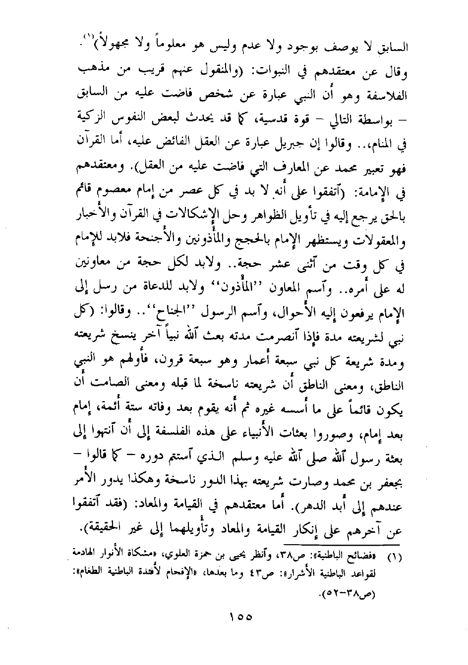 (¬1) «فضائح الباطنية» : ص 38، وانظر يحيى بن حمزة العلوي، «مشكاة الأنوار الهادمة لقواعد الباطنية الأشرار» : ص 43 وما بعدها، «الإفحام لأفئدة الباطنية الطغام» : (ص 38 - 52) .