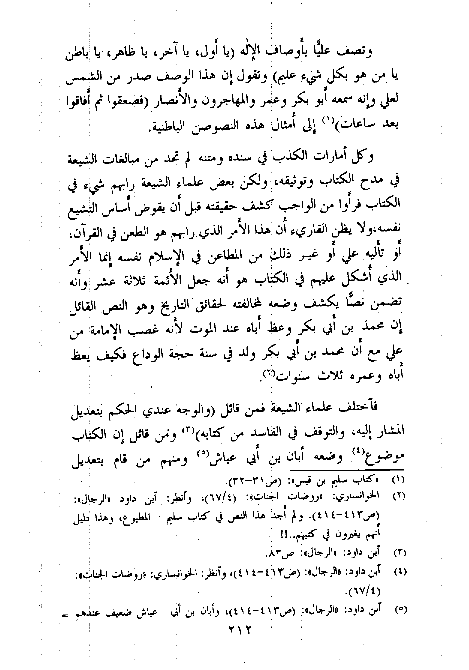 (¬2) الخوانساري: «روضات الجنات» : (4/67) ، وانظر: ابن داود «الرجال» : (ص 413- 414) . ولم أجد هذا النص في كتاب سليم - المطبوع، وهذا دليل أنهم يغيرون في كتبهم..!!