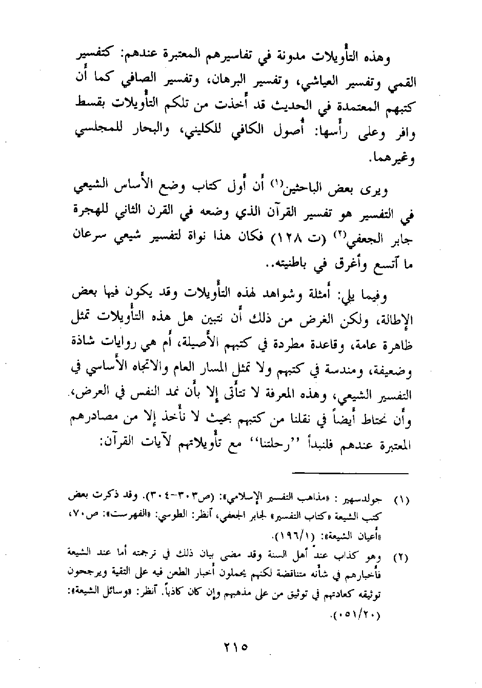 (¬1) جولدسهير: «مذاهب التفسير الإسلامي» : (ص 303 - 304) . وقد ذكرت بعض كتب الشيعة «كتاب التفسير» لجابر الجعفي، انظر: الطوسي: «الفهرست» : ص 70، «أعيان الشيعة» : (1/196) .