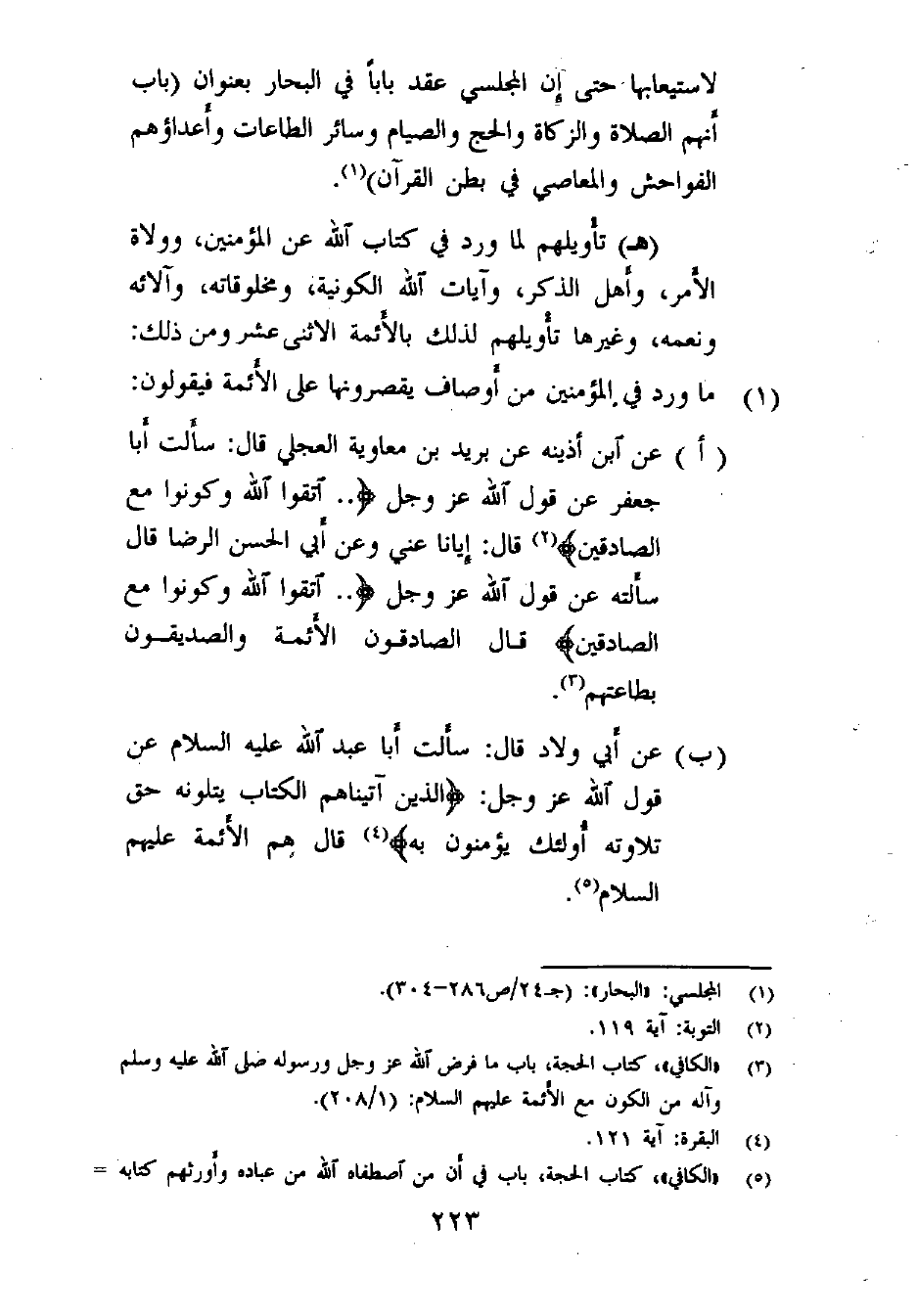 (¬3) «الكافي» ، كتاب الحجة، باب ما فرض الله (ورسوله - صلى الله عليه وسلم - وآله من الكون مع الأئمة عليهم السلام: (1/208) .