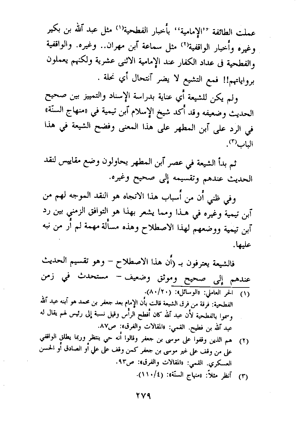 عملت الطائفة "الإمامية" بأخبار الفطحية (¬1) مثل عبد الله بن بكير وغيره وأخبار الواقفية (¬2) مثل سماعة بن مهران.. وغيره. والواقفية والفطحية في عداد الكفار عند الإمامية الإثني عشرية ولكنهم يعملون برواياتهم!! فمع التشيع لا يضر انتحال أي نحلة.