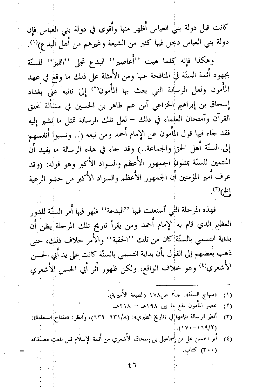 فهذه المرحلة التي استعملت فيها "البدعة" ظهر فيها أمر السنّة للدور العظيم الذي قام به الإمام أحمد، ومن يقرأ تاريخ تلك المرحلة يظن أن بداية التسمي بالسنّة كان من تلك "الحقبة" والأمر خلاف ذلك، حتى ذهب بعضهم إلى القول بأن بداية التسمي بالسنّة كانت على يد أبي الحسن الأشعري (¬4) وهو خلاف الواقع، ولكن ظهور أثر أبي الحسن الأشعري