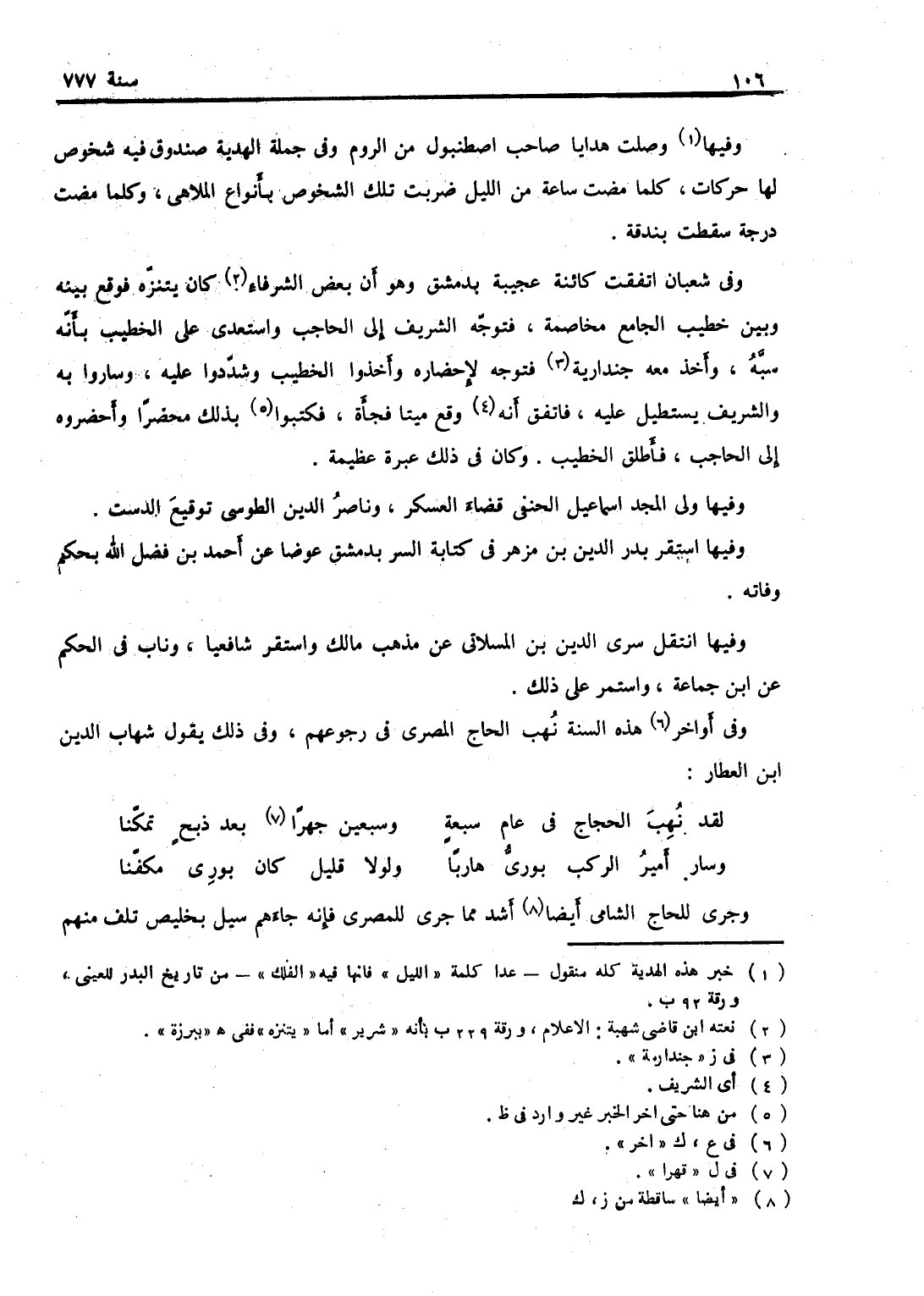 وفي آخر هذه السنة نهب الحاج المصري في رجوعهم، وفي ذلك يقول شهاب الدين بن العطار: