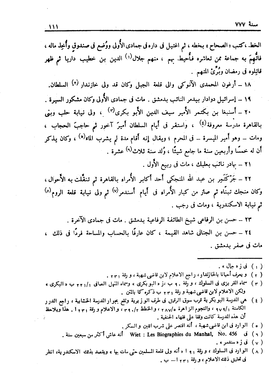 بهادر، نائب بعلبك، مات في ربيع الأول.