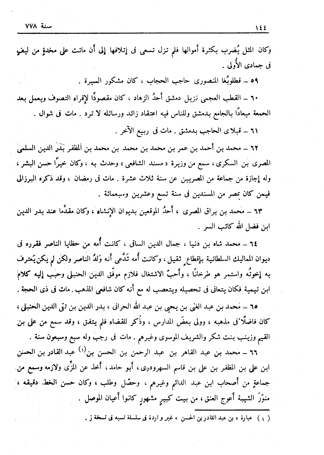 قبلائ الحاجب بدمشق، مات في ربيع الآخر.