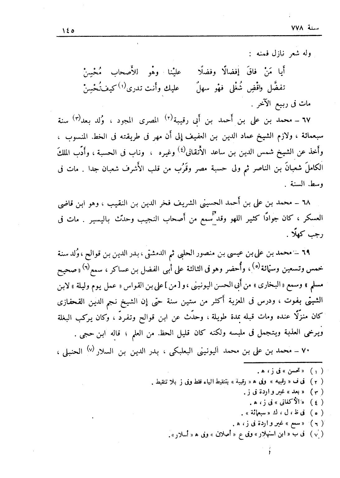 محمد بن علي بن محمد اليونيني البعلبكي، بدر الدين بن اسلار الحنبلي،