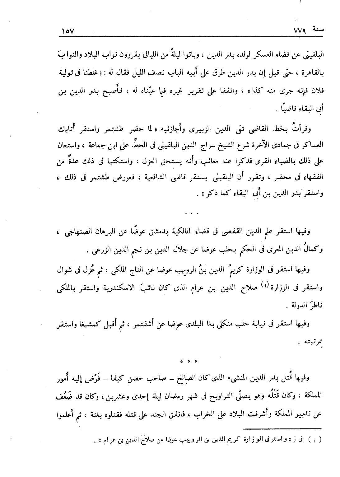 وفيها استقر في الوزارة كريم الدين بن الرويهب عوضاً عن التاج الملكي، ثم عزل في شوال واستقر في الوزارة صلاح الدين بن عرام الذي كان نائب الإسكندرية، واستقر بالملكي ناظر الدولة.