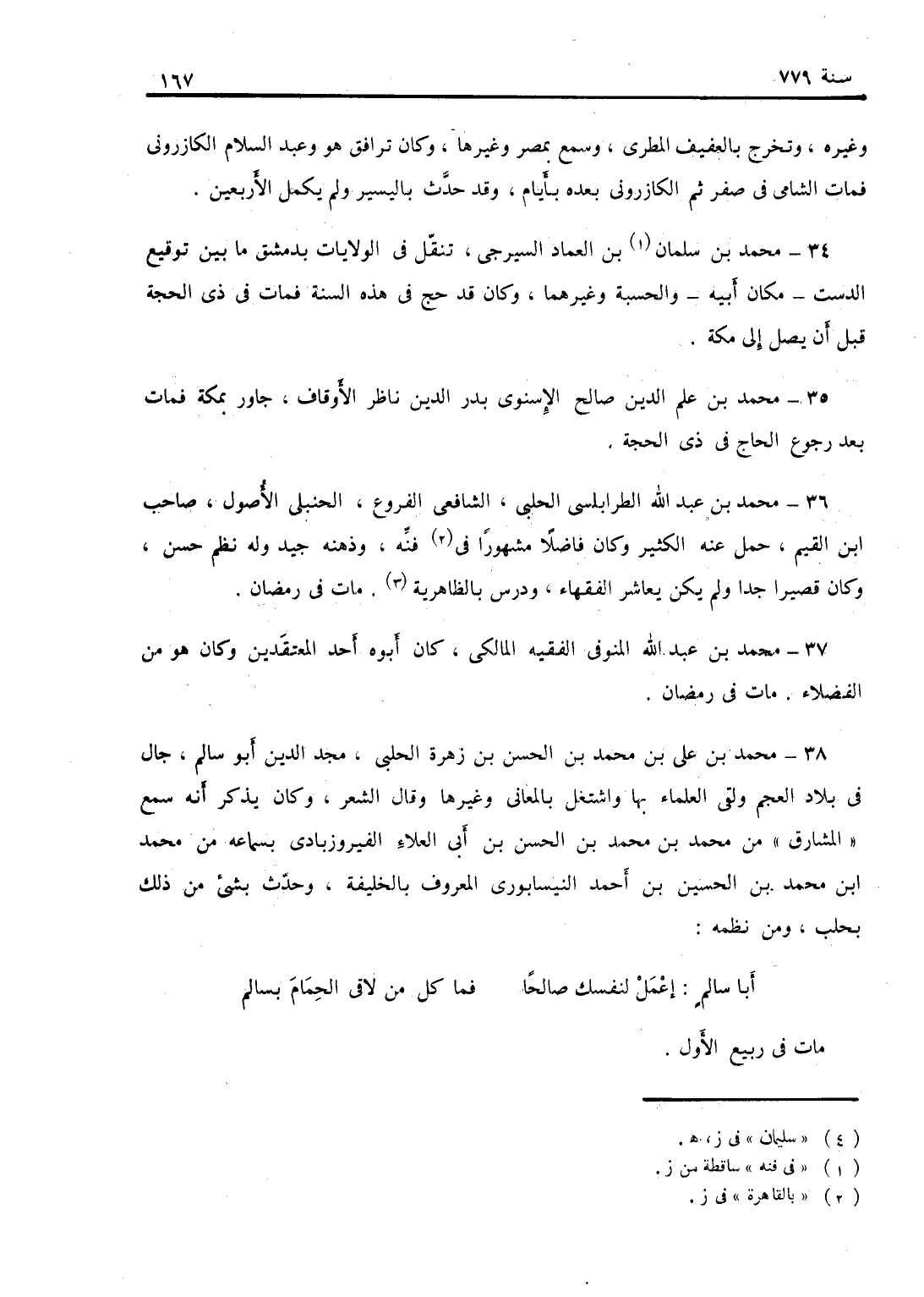أبا سالم اعمل لنفسك صالحاً ... فما كل من لاقى الحمام بسالم.