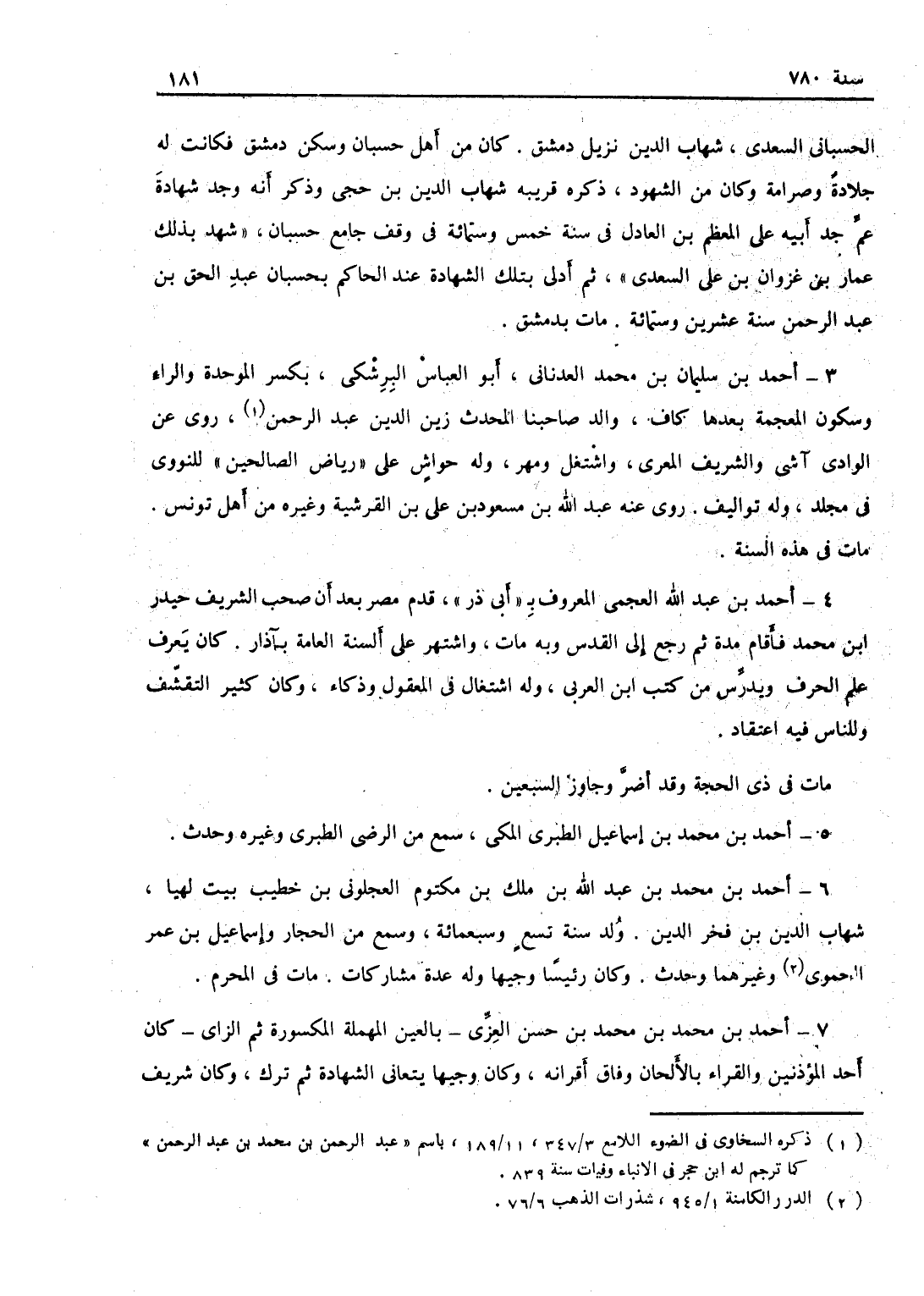 الحسباني السعدي شهاب الدين نزيل دمشق، كان من أهل حسبان، وسكن دمشق فكانت له جلادة وصرامة، وكان من الشهود، ذكره قريبه شهاب الدين بن حجى، وذكر أنه وجد شهادة عم جد أبيه على المعظم بن العادل في سنة خمس وستمائة في وقف جامع حسبان، شهد بذلك عمار ابن غزوان بن علي السعدي ثم أدى تلك الشهادة عند الحاكم بحسبان عبد الحق بن عبد الرحمن سنة عشرين وستمائة، مات بدمشق.