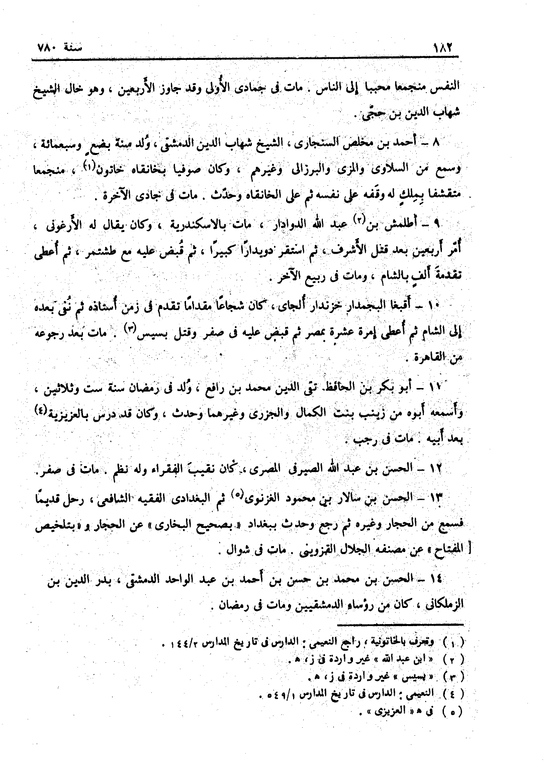 أحمد بن مخلص السخاوي الشيخ شهاب الدين الدمشقي، ولد سنة بضع وسبعمائة، وسمع من السلاوي والمزي والبرزالي وغيرهم، وكان صوفياً بخانقاه خاتون منجمعاً مقتنعاً بملك له وقفه على نفسه ثم على الخانقاه وحدث، مات في جمادى الآخرة.