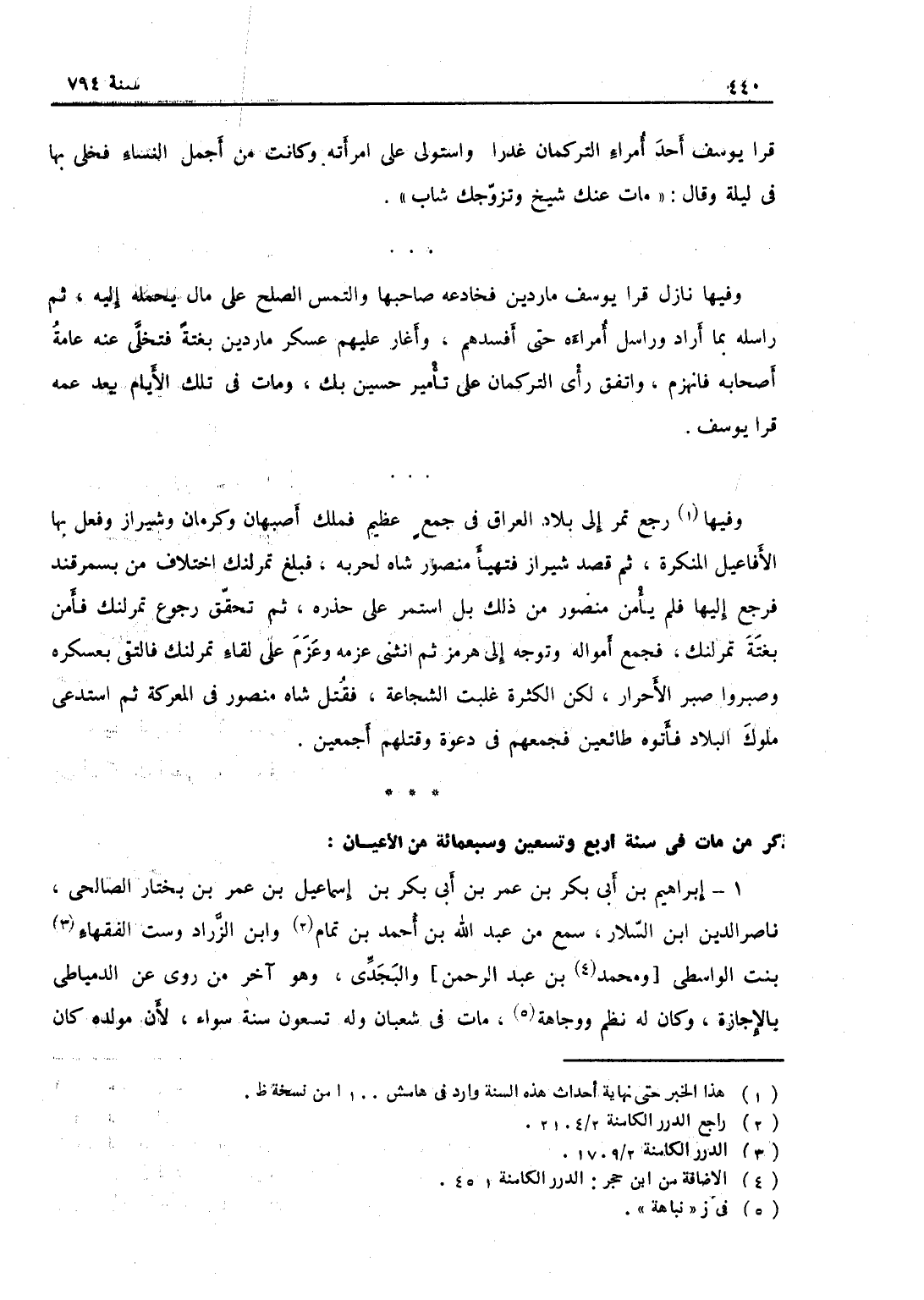 في سنة أربع وتسعين وسبعمائة من الأعيان