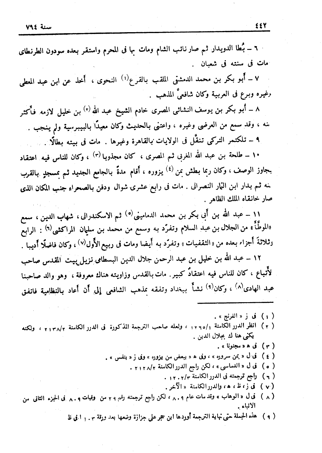 بطا الدويدار صار نائب الشام، ومات بها في المحرم، واستقر بعده سودون الطرنطاي، ومات في سنته في شعبان.