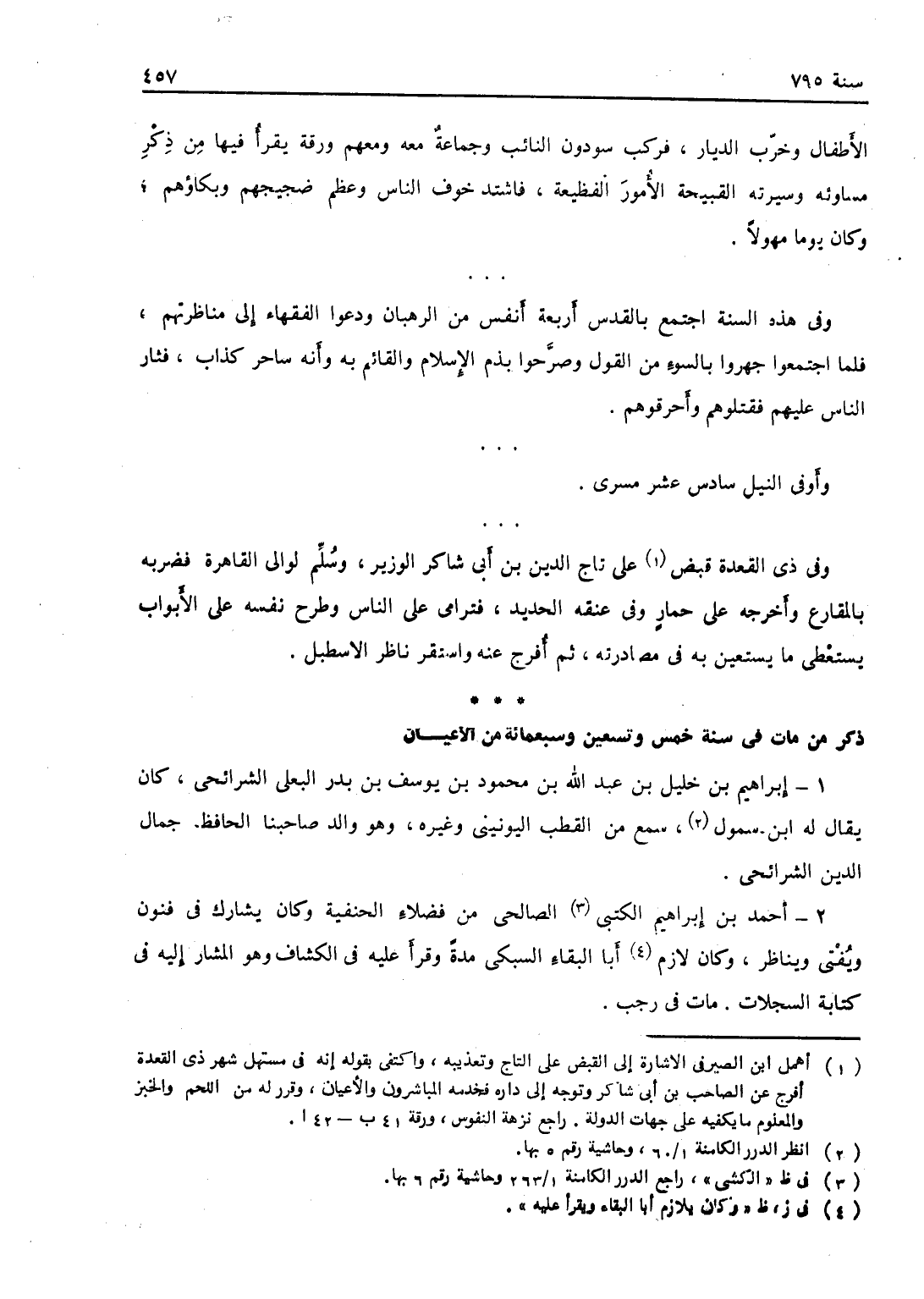 في سنة خمس وتسعين وسبعمائة من الأعيان
