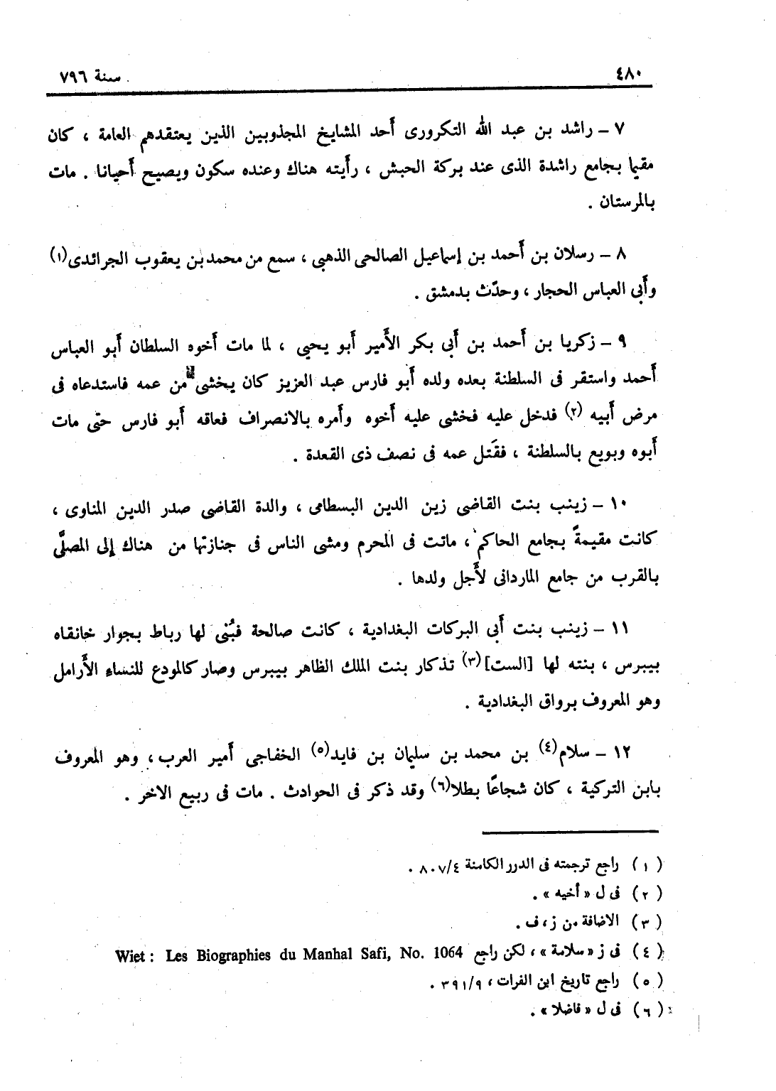 سلامة بن محمد بن سليمان بن فائد الخفاجي، أمير العرب بالبحيرة وهو المعروف بابن التركية، كان شجاعاً بطلاً، وقد ذكر في الحوادث، مات في ربيع الآخر.