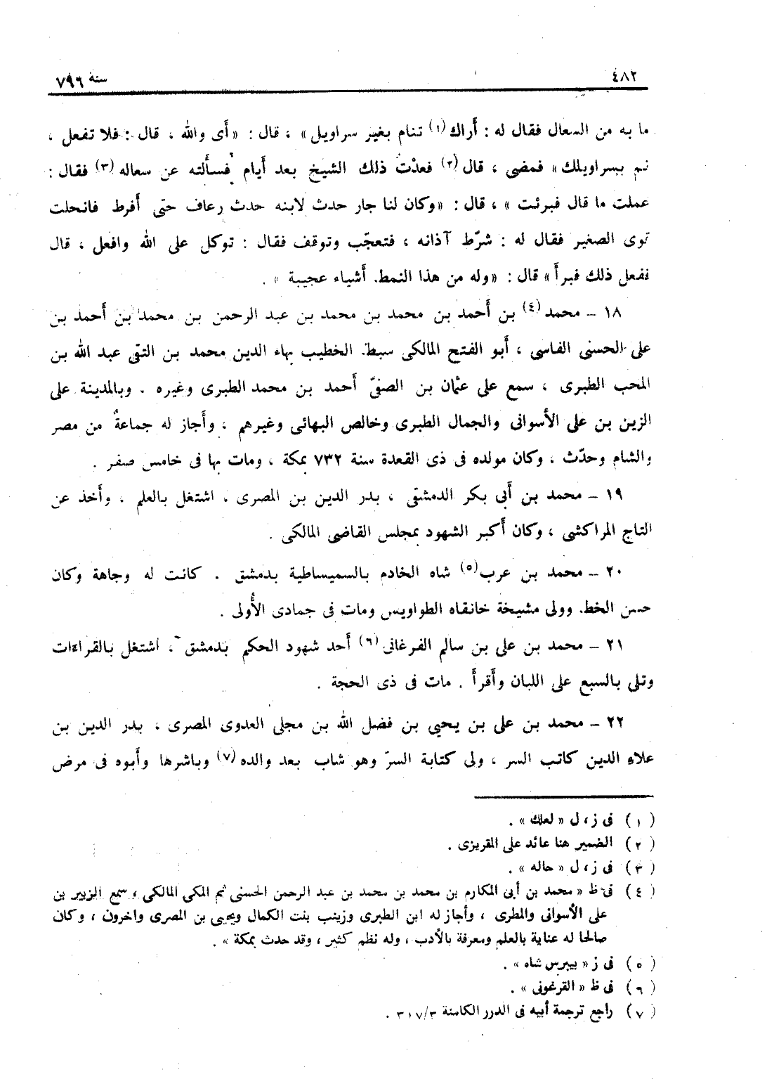 محمد بن أحمد بن محمد بن محمد بن عبد الرحمن بن محمد بن أحمد بن علي الحسني الفاسي، ثم المكي أبو الفتح المالكي، سبط الخطيب بهاء الدين محمد بن التقي عبد الله بن المحب الطبري، سمع على عثمان بن الصفي أحمد بن محمد الطبري وغيره، وبالمدينة على الزين بن علي الأسواني والجمال الطبري وخالص البهائي وغيرهم، وأجاز له جماعة من مصر والشام وحدث، وكان مولده في ذي القعدة سنة 732 بمكة ومات بها في خامس صفر.