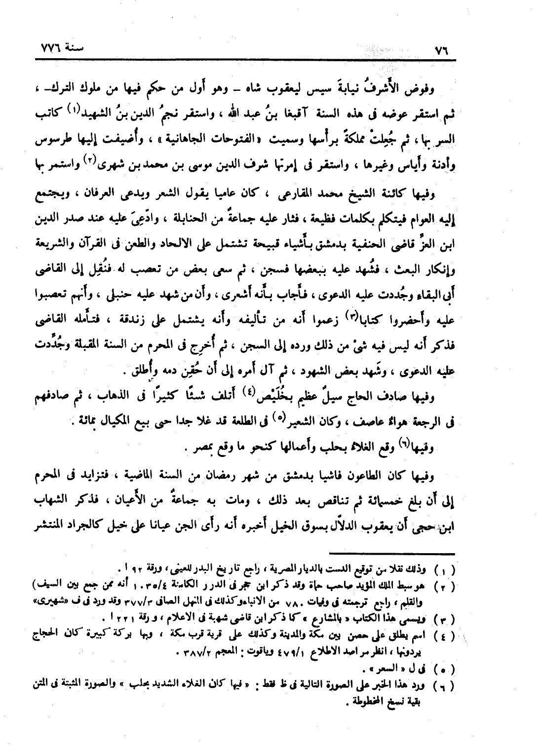 وفيها كان الطاعون فاشياً بدمشق من رمضان من السنة الماضية، فتزايد في المحرم إلى أن بلغ خمسمائة، ثم تناقص بعد ذلك، ومات فيه جماعة من الأعيان، فذكر الشهاب بن حجى أن يعقوب الدلال بسوق الخيل أخبره أنه رأى الجن عياناً على خيل كالجراد المنتشر