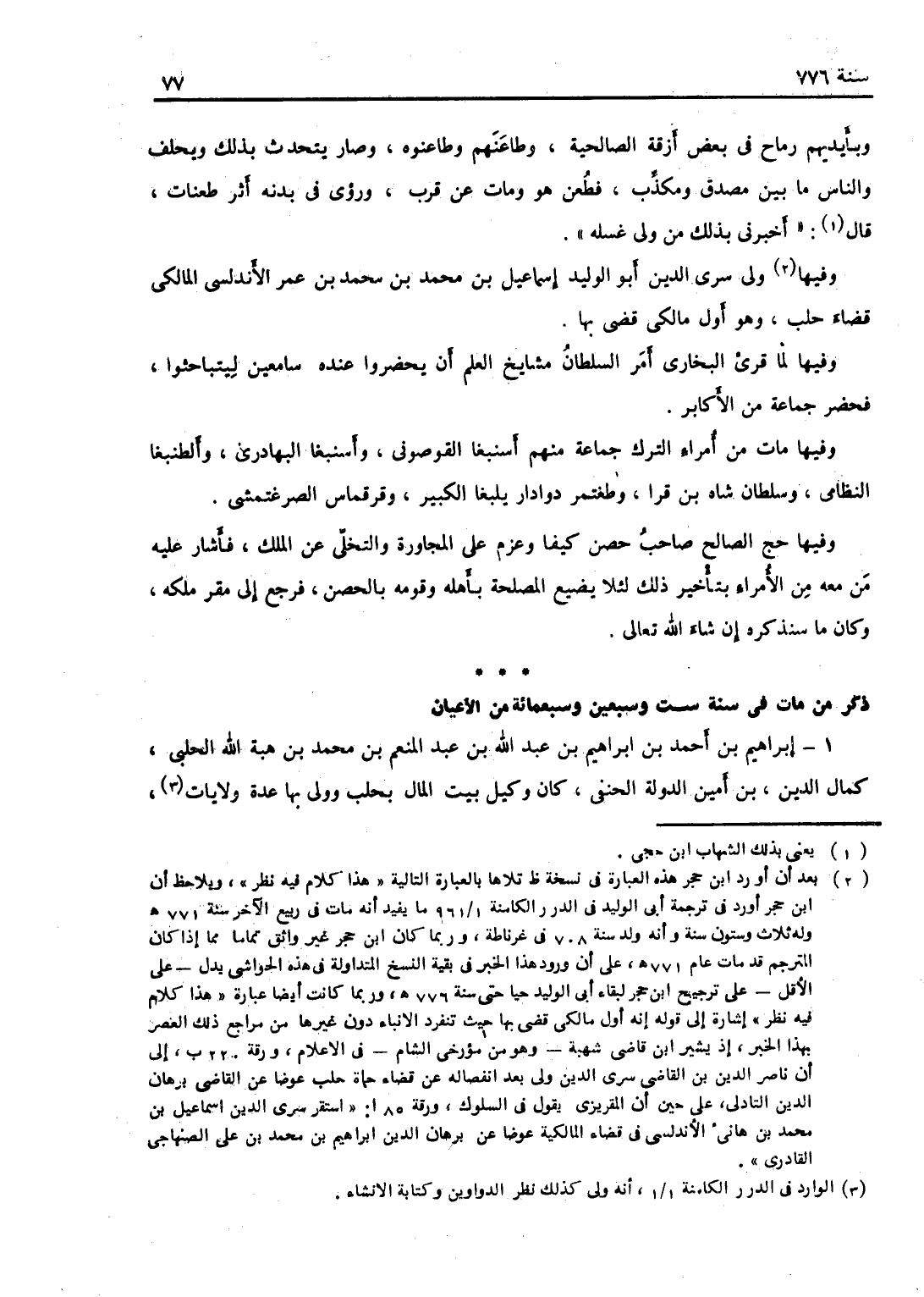 في سنة ست وسبعين وسبعمائة من الأعيان.