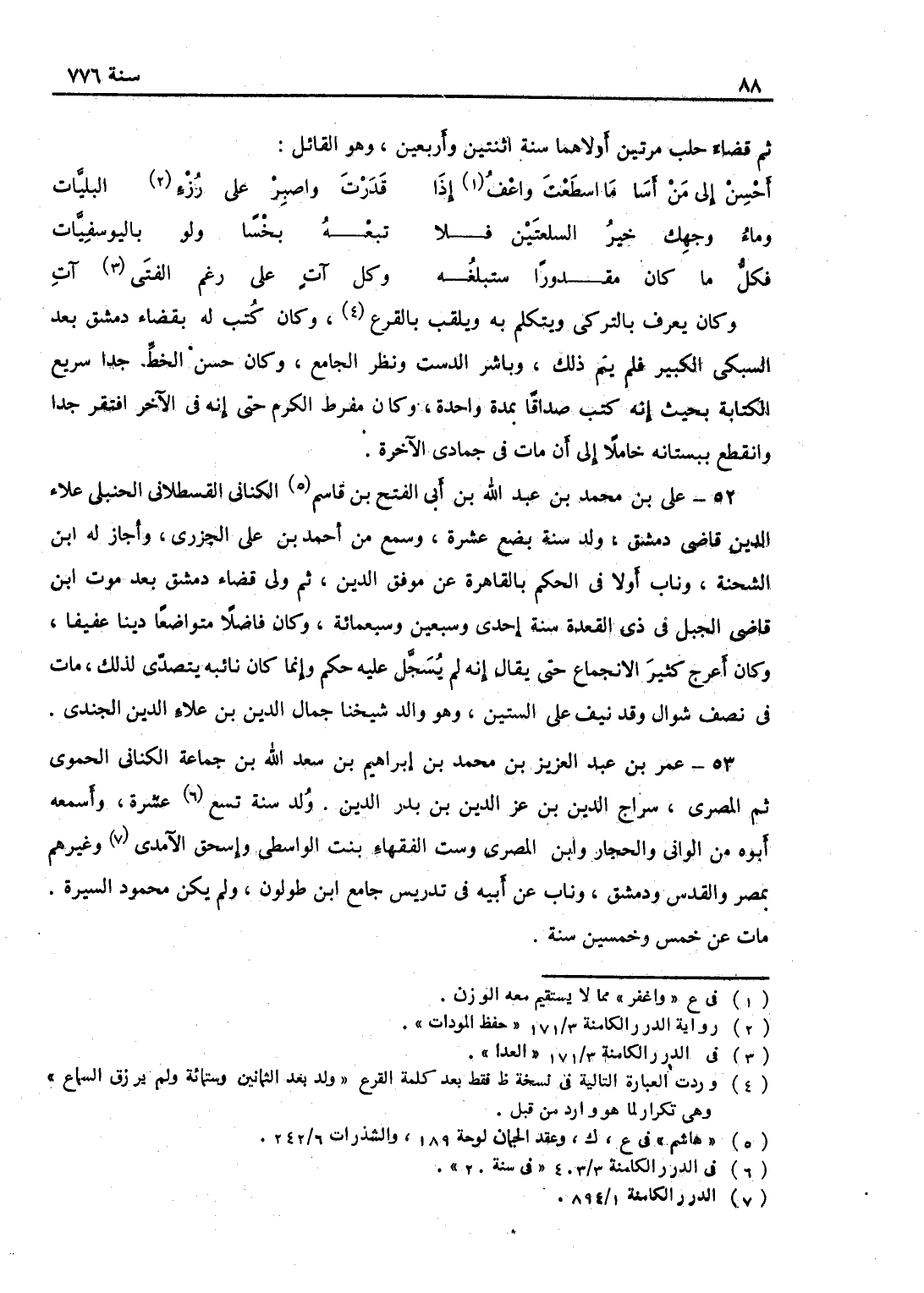ثم قضاء حلب مرتين أولهما سنة اثنتين وأربعين، وهو القائل رحمه الله تعالى: