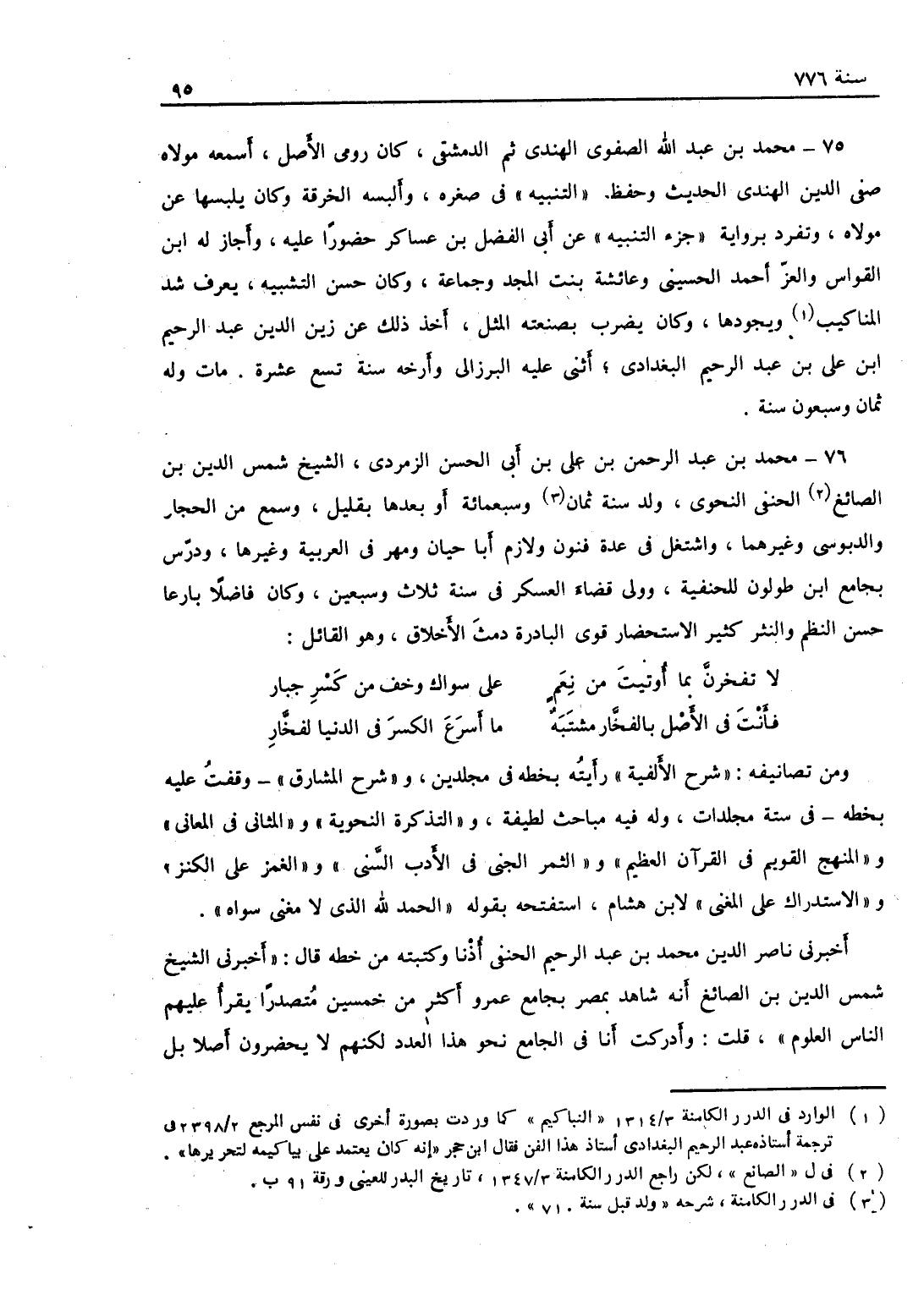 محمد بن عبد الله الصفوي الهندي ثم الدمشقي، كان رومي الأصل، أسمعه مولاه صفي الدين الهندي الحديث، وحفظ التنبيه في صغره، وألبسه الخرقة وكان يلبسها عن مولاه، وتفرد برواية جزء البيتوتة على أبي الفضل بن عساكر حضوراً عليه، وأجاز له القواس والعز أحمد الحسيني وعائشة بنت المجد وجماعة، وكان حسن الشيبة، يعرف شد المناكيب ويجودها، وكان يضرب بصنعته المثل، أخذ ذلك عن زين الدين عبد الرحيم البغدادي، أثنى عليه البرزالي وأرخه سنة تسع عشرة وله ثمان وسبعون سنة.