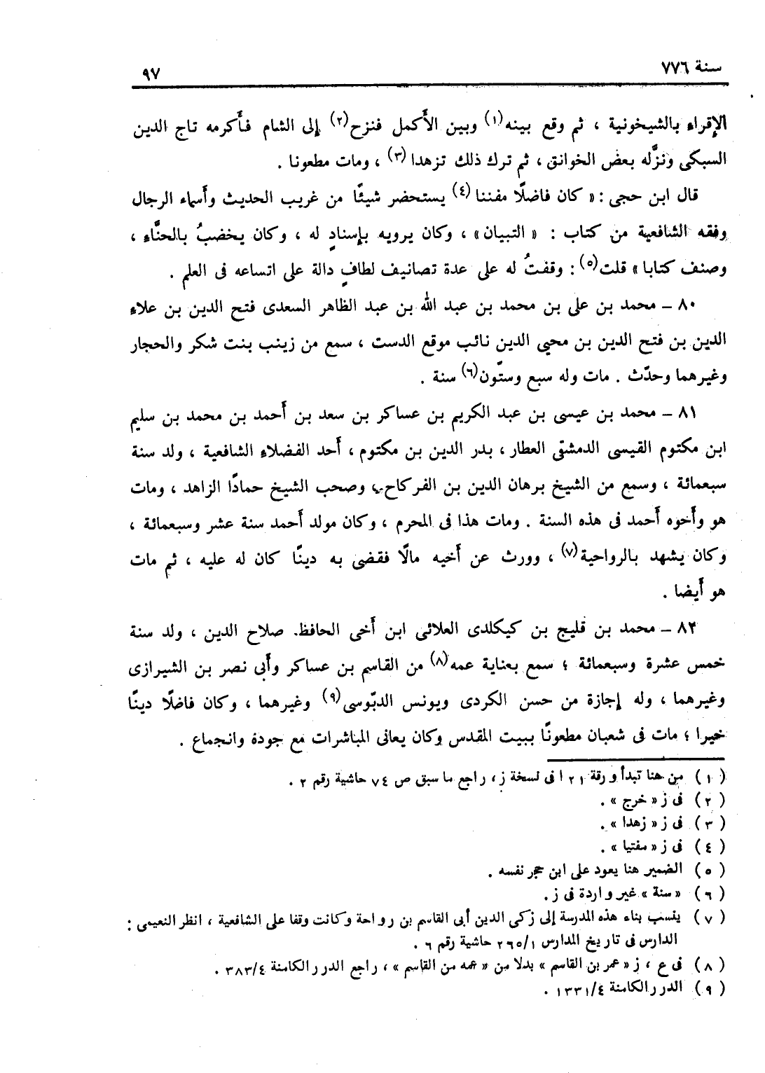 محمد بن عيسى بن عبد الكريم بن عساكر بن سعد بن أحمد بن محمد بن سليم بن مكتوم القيسي الدمشقي العطار، بدر الدين بن مكتوم، أحد الفضلاء الشافعية، ولد سنة سبعمائة، وسمع من الشيخ برهان الدين بن الفركاح وصحب الشيخ حماد الزاهد، ومات هو وأخوه أحمد في هذه السنة، ومات هذا في المحرم. وكان مولد أحمد سنة عشر وسبعمائة.
