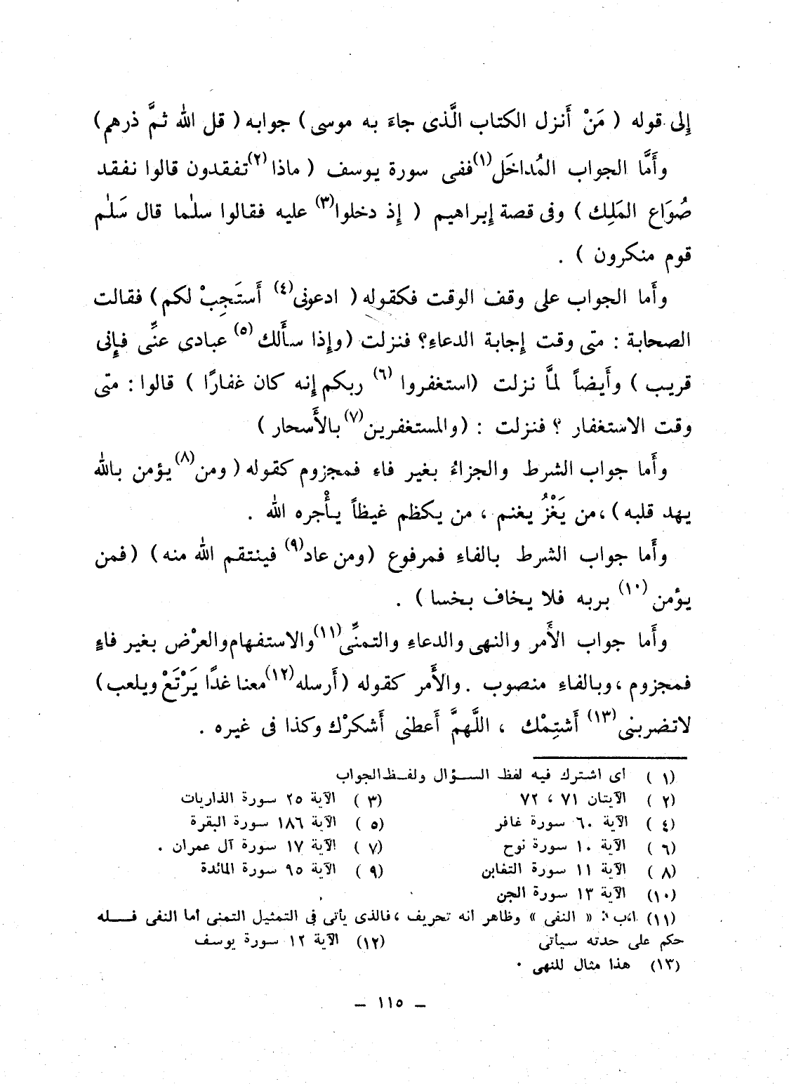 وأَما الجواب على وقف الوقت فكقوله {ادعوني أَسْتَجِبْ لَكُمْ} فقالت الصحابة: متى وقت إِجابة الدعاءِ؟ فنزلت {وَإِذَا سَأَلَكَ عِبَادِي عَنِّي فَإِنِّي قَرِيبٌ} وأَيضاً لمَّا نزلت {استغفروا رَبَّكُمْ إِنَّهُ كَانَ غَفَّاراً} قالوا: متى وقت الاستغفار؟ فنزلت: {والمستغفرين بالأسحار} .