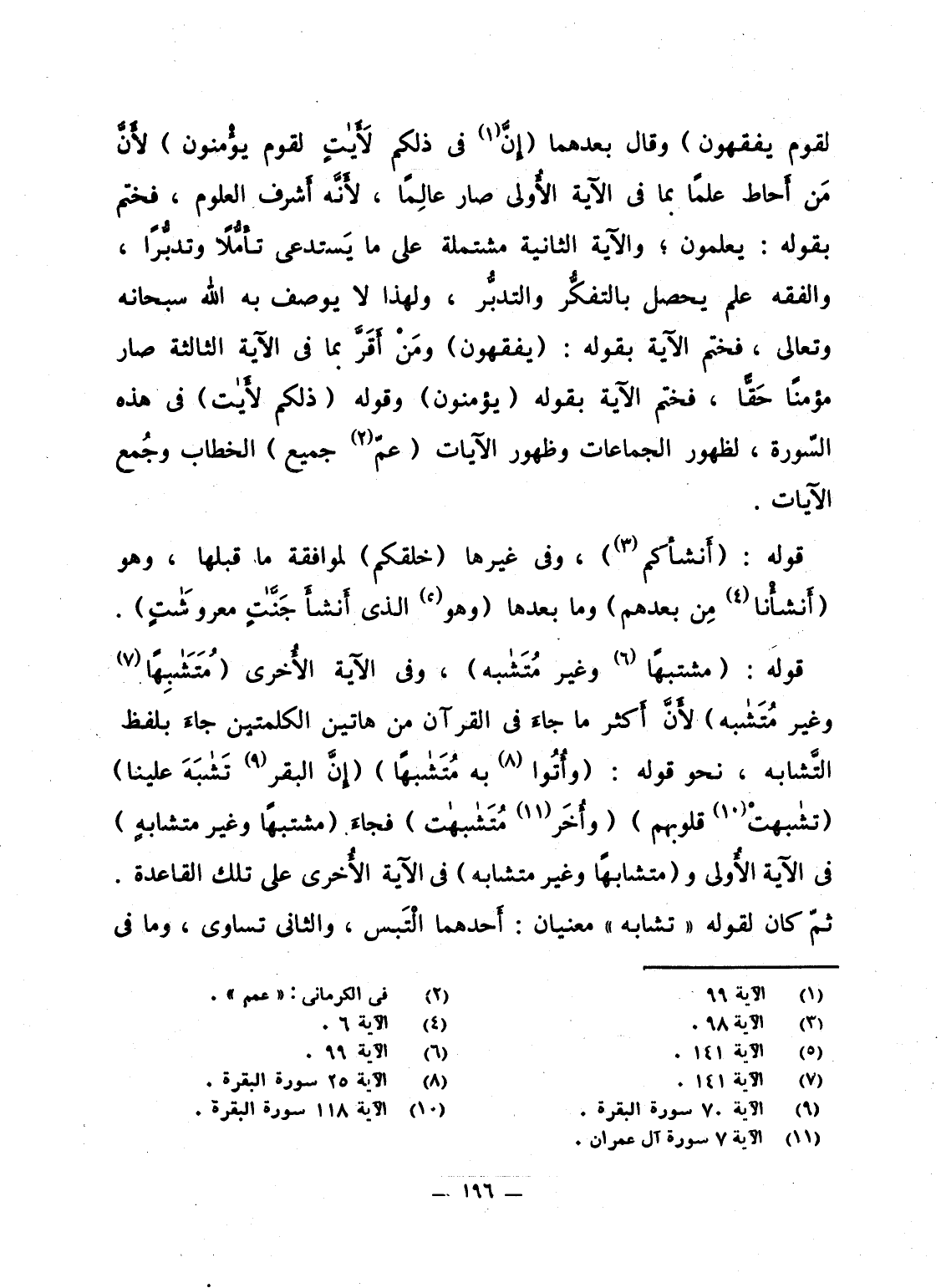 قوله: {مُشْتَبِهاً وَغَيْرَ مُتَشَابِهٍ} ، وفى الآية الأُخرى {مُتَشَابِهاً وَغَيْرَ مُتَشَابِهٍ} لأَنَّ أَكثر ما جاءَ فى القرآن من هاتين الكلمتين جاءَ بلفظ التَّشابه، نحو قوله: {وَأُتُواْ بِهِ مُتَشَابِهاً} {إِنَّ البقر تَشَابَهَ عَلَيْنَا} {تَشَابَهَتْ قُلُوبُهُمْ} {وَأُخَرُ مُتَشَابِهَاتٌ} فجاءَ {مُشْتَبِهاً وَغَيْرَ مُتَشَابِهٍ} فى الآية الأُولى و {مُتَشَابِهاً وَغَيْرَ مُتَشَابِهٍ} فى الآية الأُخرى على تلك القاعدة. ثمّ كان لقوله "تشابه" معنيان: أَحدهما الْتَبس، والثانى تساوى، وما فى