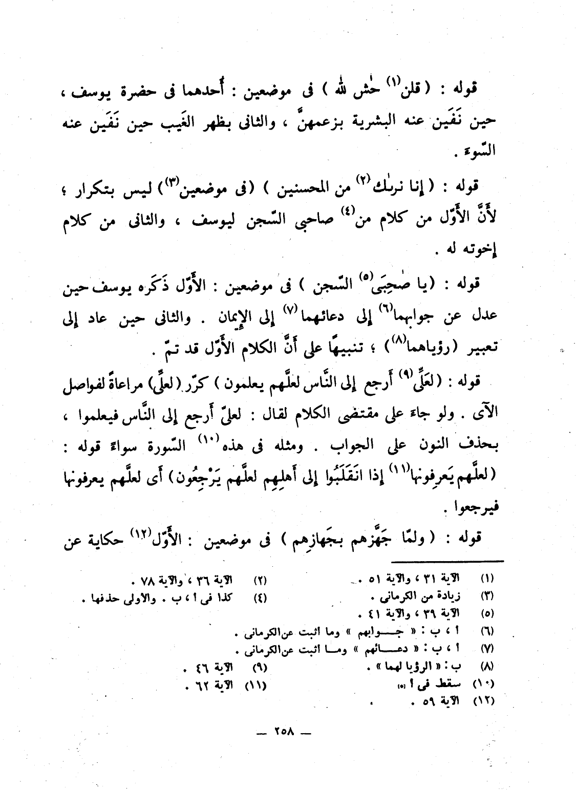 قوله: {إِنَّا نَرَاكَ مِنَ المحسنين} (فى موضعين) ليس بتكرار؛ لأَنَّ الأَوّل من كلام من صاحبى السّجن ليوسف، والثانى من كلام إِخوته له.