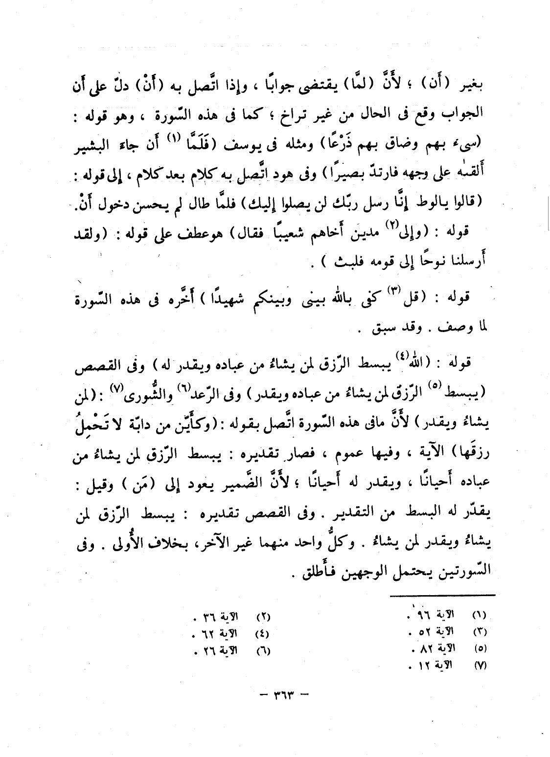 قوله: {الله يَبْسُطُ الرزق لِمَن يَشَآءُ مِنْ عِبَادِهِ وَيَقْدِرُ لَهُ} وفى القصص {يَبْسُطُ الرزق لِمَن يَشَآءُ مِنْ عِبَادِهِ وَيَقْدِرُ} وفى الرّعد والشُّورى: {لِمَن يَشَآءُ وَيَقْدِرُ} لأَنَّ ما فى هذه السّورة اتَّصل بقوله: {وَكَأَيِّن مِّن دَآبَّةٍ لاَّ تَحْمِلُ رِزْقَهَا} الآية، وفيها عموم، فصار تقديره، يبسط الرّزق لمن يشاءُ من عباده أَحياناً، ويقدر له أَحياناً؛ لأَنَّ الضَّمير يعود إِلى (مَن) وقيل: يقدّر له البسط من التقدير. وفى القصص تقديره: يبسط الرّزق لمن يشاءُ ويقدر لمن يشاءُ. وكلُّ واحد منهما غير الآخر، بخلاف الأُولى. وفى السّورتين يحتمل الوجهين فأَطلق.
