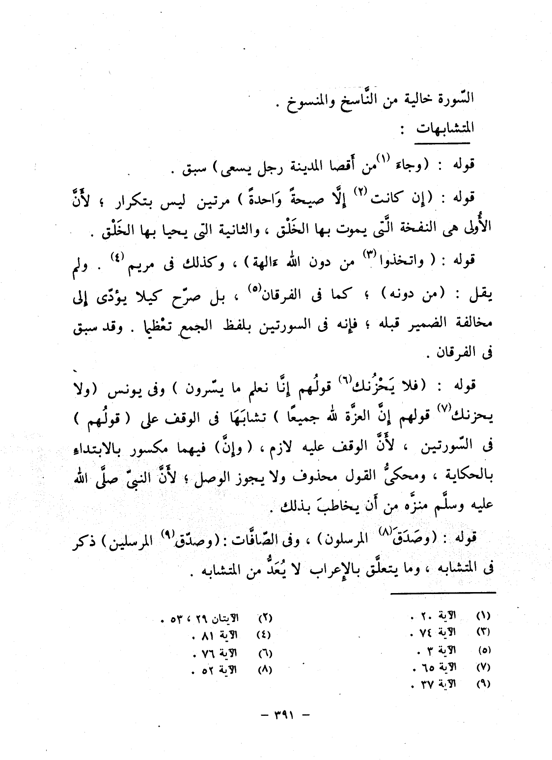 قوله: {وَصَدَقَ المرسلون} ، وفى الصّافَّات: {وَصَدَّقَ المرسلين} ذكر فى المتشابه، وما يتعلَّق بالإِعراب لا يُعَدُّ من المتشابه.