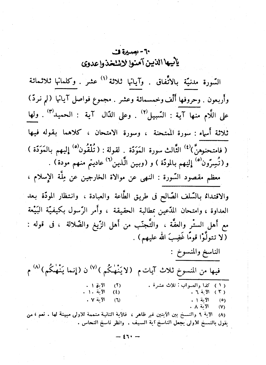 فيها من المنسوخ ثلاث آيات م {لاَ يَنْهَاكُم} ن {إِنَّمَا يَنْهَاكُم} م