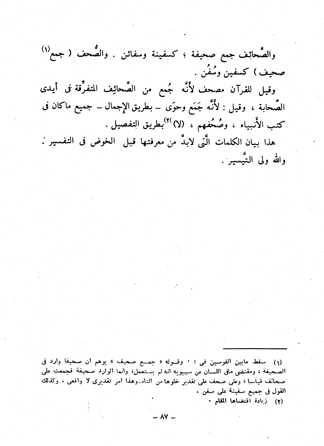 هذا بيان الكلمات الَّتى لا بدَّ من معرفتها قبل الخوص فى التفسير. والله ولى التَّيسير.