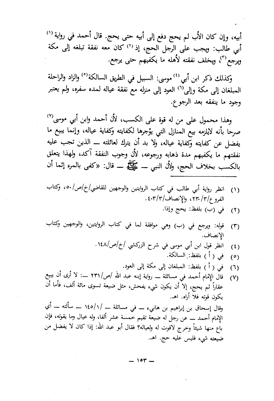 وَهَذَا مَحْمُولٌ عَلَى مَنْ لَهُ قُوَّةٌ عَلَى الْكَسْبِ؛ لِأَنَّ أَحْمَدَ وَابْنَ أَبِي مُوسَى صَرَّحَا بِأَنَّهُ لَا يَلْزَمُهُ بَيْعُ الْمَنَازِلِ الَّتِي يُؤَجِّرُهَا لِكِفَايَتِهِ، وَكِفَايَةِ عِيَالِهِ، وَإِنَّمَا يَبِيعُ مَا يَفْضُلُ عَنْ كِفَايَتِهِ، وَكِفَايَةِ عِيَالِهِ، وَلَا بُدَّ أَنْ يَتْرُكَ لِعَائِلَتِهِ - الَّذِينَ تَجِبُ عَلَيْهِ نَفَقَتُهُمْ - مَا يَكْفِيهِمْ مُدَّةَ ذَهَابِهِ وَرُجُوعِهِ؛ لِأَنَّ وُجُوبَ النَّفَقَةِ آكَدُ، وَلِهَذَا يَتَعَلَّقُ بِالْكَسْبِ بِخِلَافِ الْحَجِّ؛ وَلِأَنَّ النَّبِيَّ - صَلَّى اللَّهُ عَلَيْهِ وَسَلَّمَ - قَالَ: («كَفَى بِالْمَرْءِ إِثْمًا أَنْ