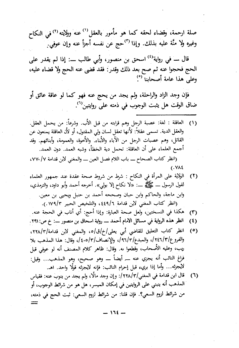 صِلَةً لِرَحِمِهِ، وَقَضَاءً لِحَقِّهِ، كَمَا هُوَ مَأْمُورٌ بِالْعَقْلِ عَنْهُ، وَوِلَايَتِهِ فِي النِّكَاحِ وَغَيْرِهِ، وَلَا مِنَّةَ عَلَيْهِ بِذَلِكَ. وَإِذَا حَجَّ عَنْ نَفْسِهِ أَجْزَأَ عَنْهُ وَإِنْ عُوفِيَ.