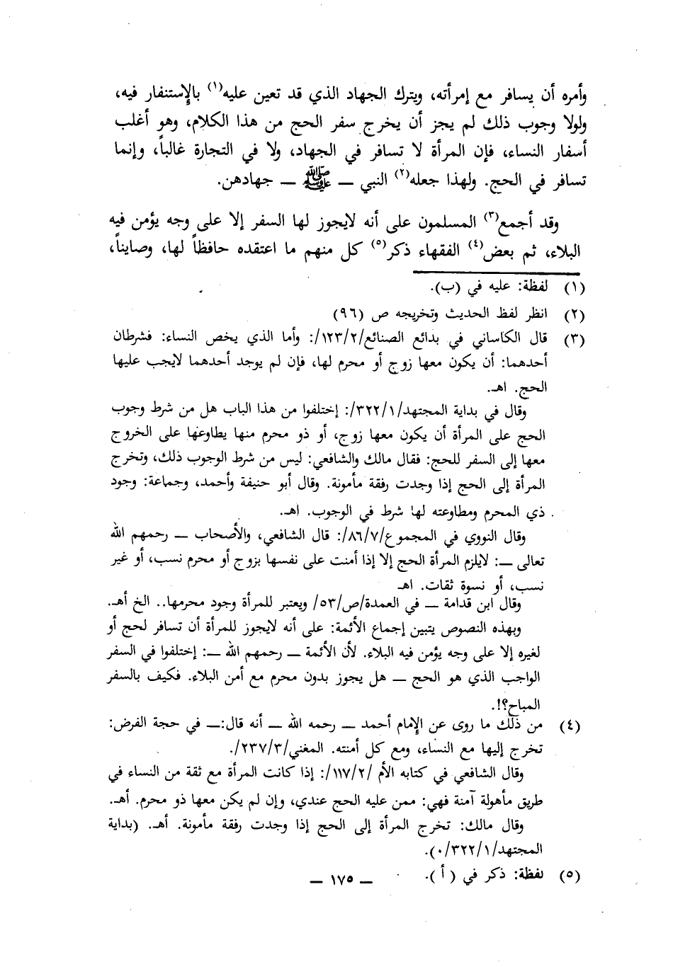 وَقَدْ أَجْمَعَ الْمُسْلِمُونَ عَلَى أَنَّهُ لَا يَجُوزُ لَهَا السَّفَرُ إِلَّا عَلَى وَجْهٍ يُؤْمَنُ فِيهِ الْبَلَاءُ، ثُمَّ بَعْضُ الْفُقَهَاءِ ذَكَرَ كُلٌّ مِنْهُمْ مَا اعْتَقَدَهُ حَافِظًا لَهَا وَصَايِنًا،