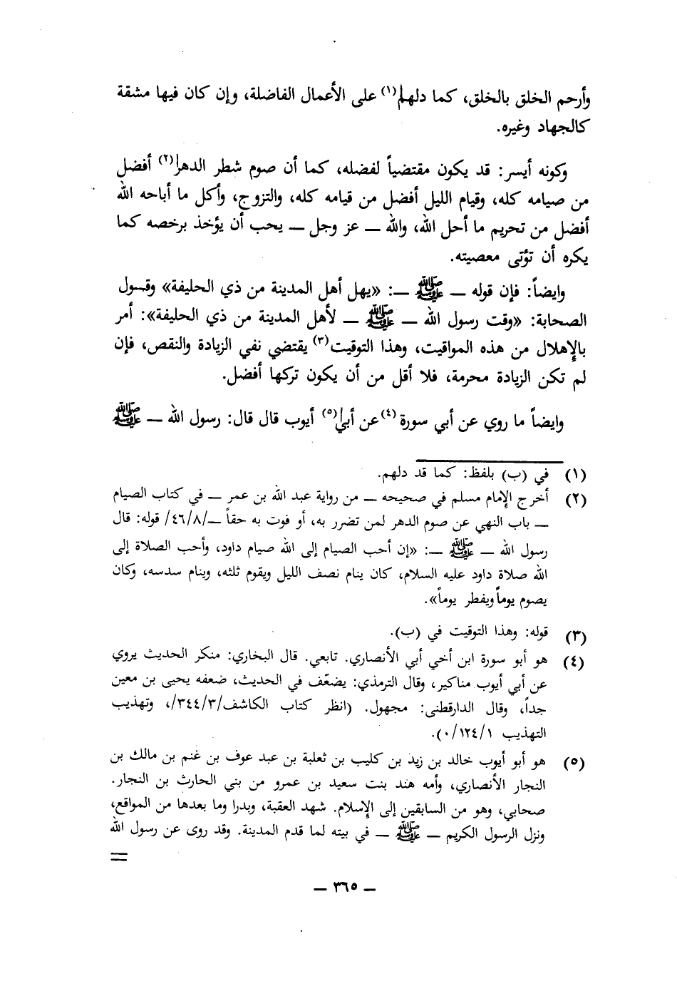 وَكَوْنُهُ أَيْسَرَ قَدْ يَكُونُ مُقْتَضِيًا لِفَضْلِهِ، كَمَا أَنَّ صَوْمَ شَطْرِ الدَّهْرِ أَفْضَلُ مِنْ صِيَامِهِ كُلِّهِ وَقِيَامَ اللَّيْلِ أَفْضَلُ مِنْ قِيَامِهِ كُلِّهِ، وَالتَّزَوُّجَ وَأَكْلَ مَا أَبَاحَهُ اللَّهُ أَفْضَلُ مِنْ تَحْرِيمِ مَا أَحَلَّ اللَّهُ، وَاللَّهُ - عَزَّ وَجَلَّ - يُحِبُّ أَنْ يُؤْخَذَ بِرُخَصِهِ كَمَا يَكْرَهُ أَنْ تُؤْتَى مَعْصِيَتُهُ.