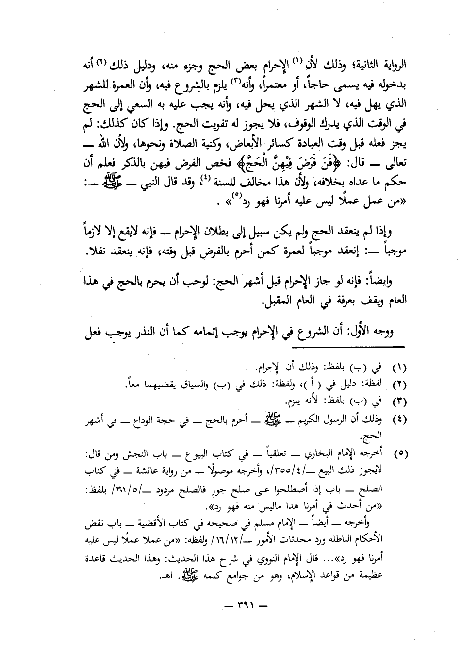 وَوَجْهُ الْأَوَّلِ: أَنَّ الشُّرُوعَ فِي الْإِحْرَامِ يُوجِبُ إِتْمَامَهُ كَمَا أَنَّ النَّذْرَ يُوجِبُ فِعْلَ