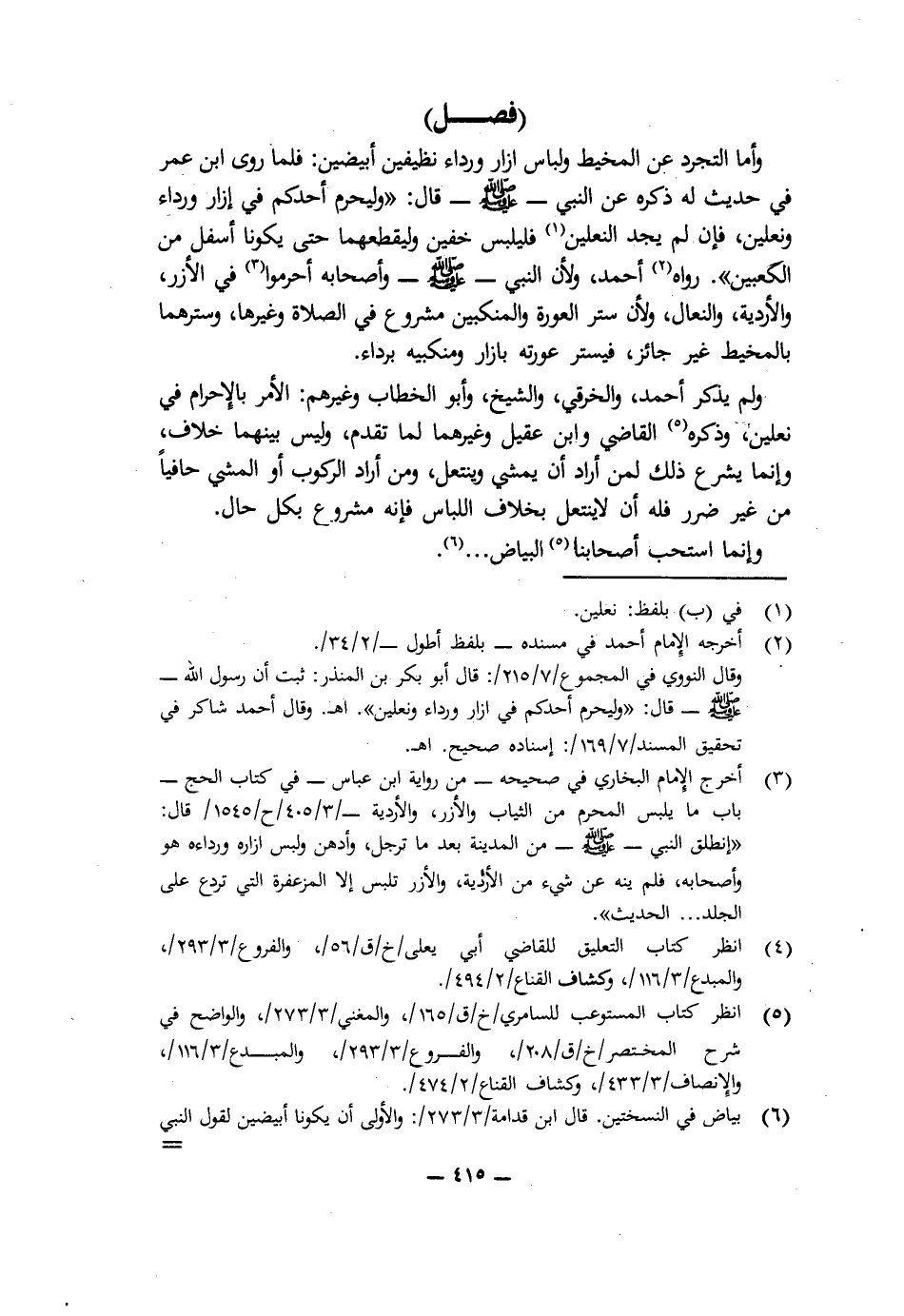 وَلَمْ يَذْكُرْ أَحْمَدُ وَالْخِرَقِيُّ وَالشَّيْخُ وَأَبُو الْخَطَّابِ وَغَيْرُهُمُ الْأَمْرَ بِالْإِحْرَامِ فِي نَعْلَيْنِ، وَذَكَرَهُ الْقَاضِي وَابْنُ عَقِيلٍ وَغَيْرُهُمَا لِمَا تَقَدَّمَ، وَلَيْسَ بَيْنَهُمَا خِلَافٌ، وَإِنَّمَا يُشْرَعُ ذَلِكَ لِمَنْ أَرَادَ أَنْ يَمْشِيَ وَيَنْتَعِلَ، وَمَنْ أَرَادَ الرُّكُوبَ أَوِ الْمَشْيَ حَافِيًا مِنْ غَيْرِ ضَرَرٍ فَلَهُ أَنْ لَا يَنْتَعِلَ بِخِلَافِ اللِّبَاسِ فَإِنَّهُ مَشْرُوعٌ بِكُلِّ حَالٍ.