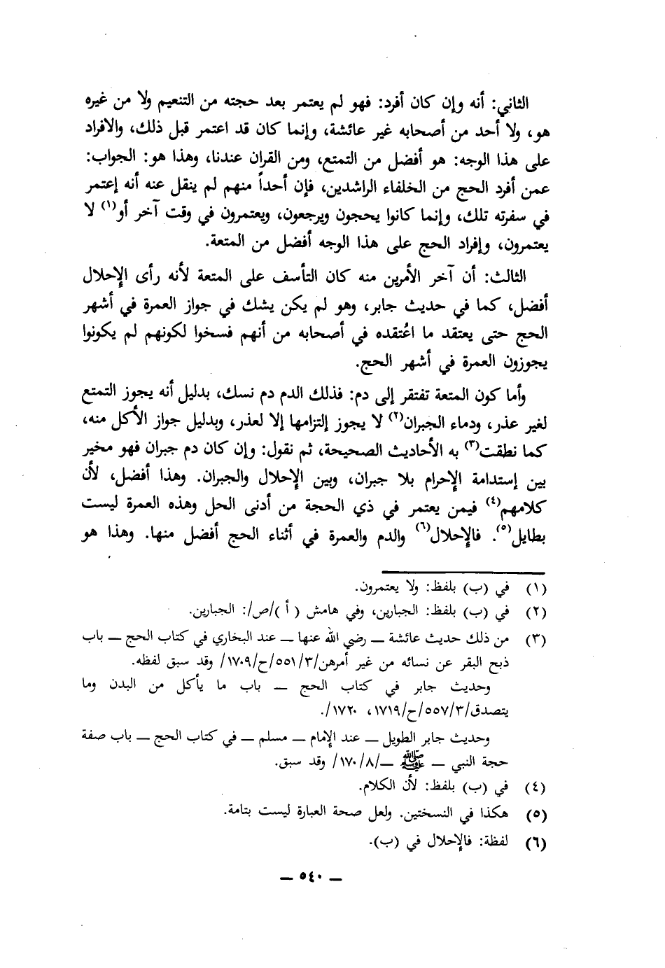 الثَّانِي: أَنَّهُ وَإِنْ كَانَ أَفْرَدَ فَهُوَ لَمْ يَعْتَمِرْ بَعْدَ حَجَّتِهِ مِنَ التَّنْعِيمِ وَلَا مِنْ غَيْرِهِ هُوَ، وَلَا أَحَدٌ مِنْ أَصْحَابِهِ غَيْرُ عَائِشَةَ، وَإِنَّمَا كَانَ قَدِ اعْتَمَرَ قَبْلَ ذَلِكَ، وَالْإِفْرَادُ عَلَى هَذَا الْوَجْهِ هُوَ أَفْضَلُ مِنَ التَّمَتُّعِ، وَمِنِ الْقِرَانِ عِنْدَنَا، وَهَذَا هُوَ الْجَوَابُ عَمَّنْ أَفْرَدَ الْحَجَّ مِنَ الْخُلَفَاءِ الرَّاشِدِينَ، فَإِنَّ أَحَدًا مِنْهُمْ لَمْ يُنْقَلْ عَنْهُ أَنَّهُ اعْتَمَرَ فِي سَفْرَتِهِ تِلْكَ، وَإِنَّمَا كَانُوا يَحُجُّونَ وَيَرْجِعُونَ، وَيَعْتَمِرُونَ فِي وَقْتٍ آخَرَ أَوْ لَا يَعْتَمِرُونَ، وَإِفْرَادُ الْحَجِّ عَلَى هَذَا الْوَجْهِ أَفْضَلُ مِنَ الْمُتْعَةِ.
