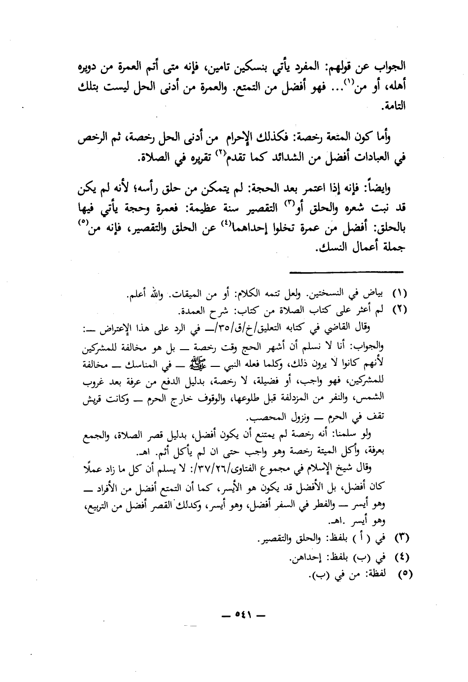 الْجَوَابُ عَنْ قَوْلِهِمْ: الْمُفْرِدُ يَأْتِي بِنُسُكَيْنِ تَامَّيْنِ، فَإِنَّهُ مَتَى أَتَمَّ الْعُمْرَةَ مِنْ دُوَيْرَةِ أَهْلِهِ أَوْ مِنْ. . . فَهُوَ أَفْضَلُ مِنَ التَّمَتُّعِ. وَالْعُمْرَةُ مِنْ أَدْنَى الْحِلِّ لَيْسَتْ بِتِلْكَ التَّامَّةِ.