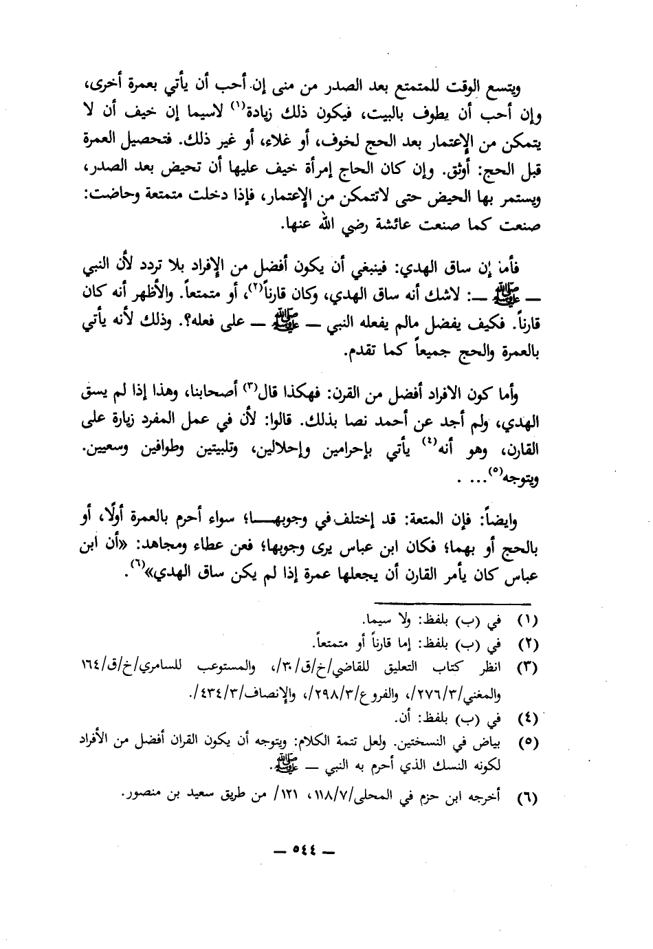 وَأَمَّا كَوْنُ الْإِفْرَادِ أَفْضَلَ مِنَ الْقِرَانِ، فَهَكَذَا قَالَ أَصْحَابُنَا، وَهَذَا إِذَا لَمْ يَسُقِ الْهَدْيَ وَلَمْ أَجِدْ عَنْ أَحْمَدَ نَصًّا بِذَلِكَ، قَالُوا: لِأَنَّ فِي عَمَلِ الْمُفْرِدِ زِيَارَةً عَلَى الْقَارِنِ، وَهُوَ أَنَّهُ يَأْتِي بِإِحْرَامَيْنِ، وَإِحْلَالَيْنِ، وَتَلْبِيَتَيْنِ، وَطَوَافَيْنِ، وَسَعْيَيْنِ، وَيَتَوَجَّهُ. . .