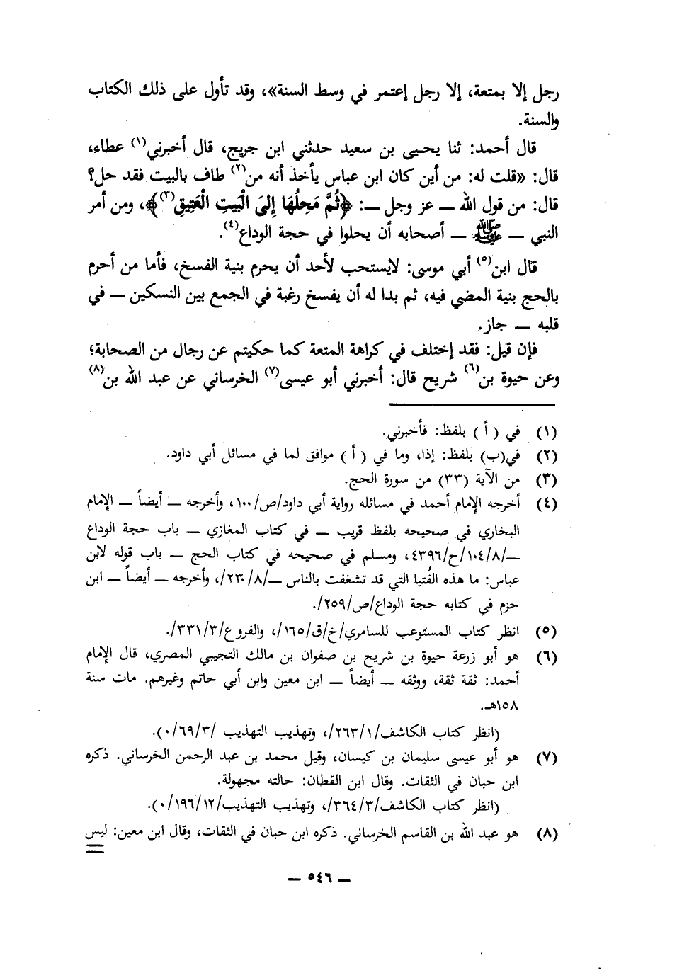 فَإِنْ قِيلَ: فَقَدِ اخْتُلِفَ فِي كَرَاهَةِ الْمُتْعَةِ كَمَا حَكَيْتُمْ عَنْ رِجَالٍ مِنَ الصَّحَابَةِ، وَعَنْ حَيْوَةَ بْنِ شُرَيْحٍ قَالَ: أَخْبَرَنِي أَبُو عِيسَى الْخُرَاسَانِيُّ، عَنْ عَبْدِ اللَّهِ بْنِ