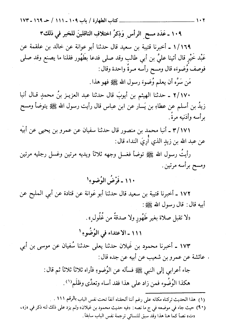 ( 109 عدد مسح الرأس وذكر اختلاف الناقلين للخبر في ذلك )