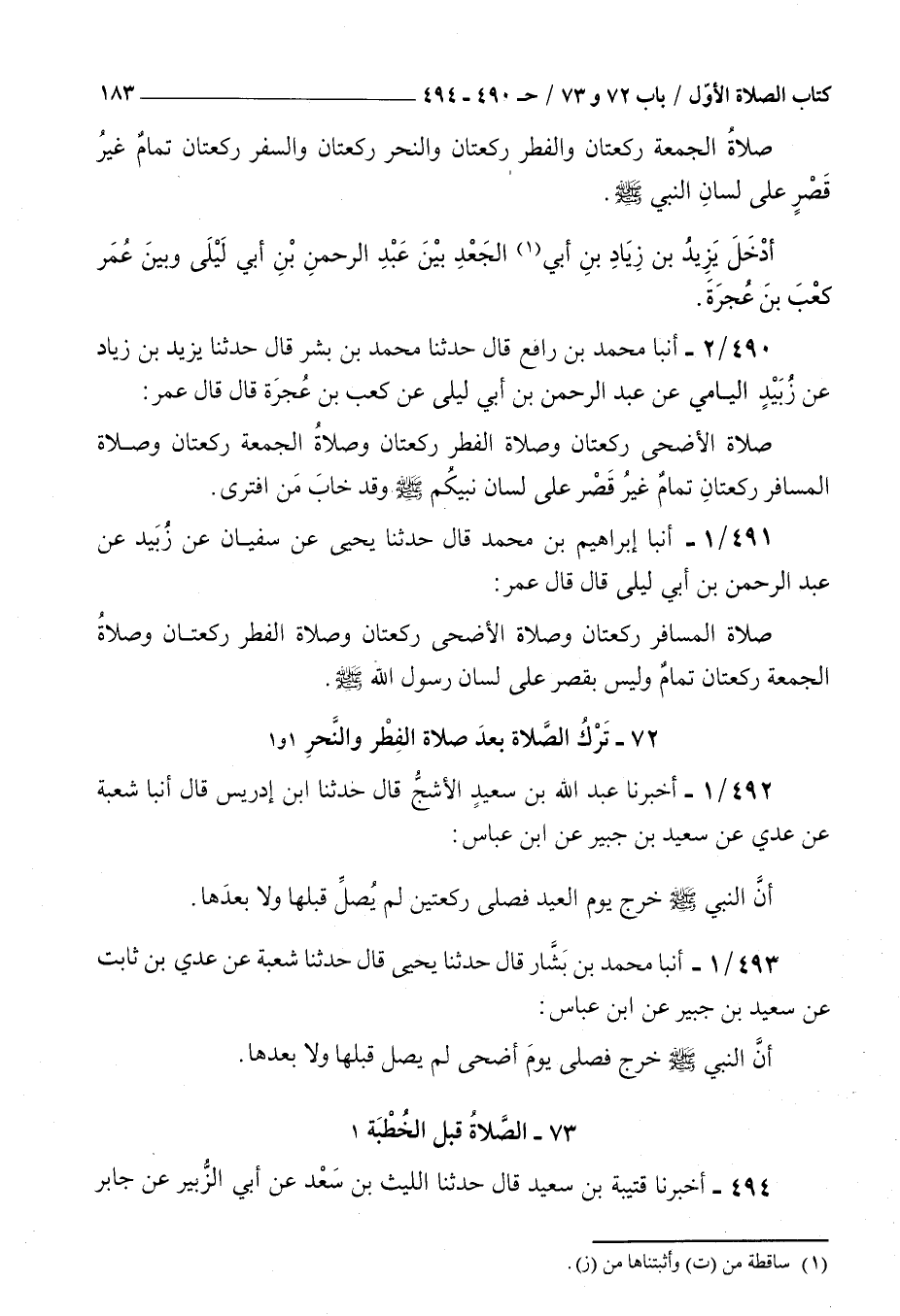 ( 72 ترك الصلاة بعد صلاة الفطر والنحر )