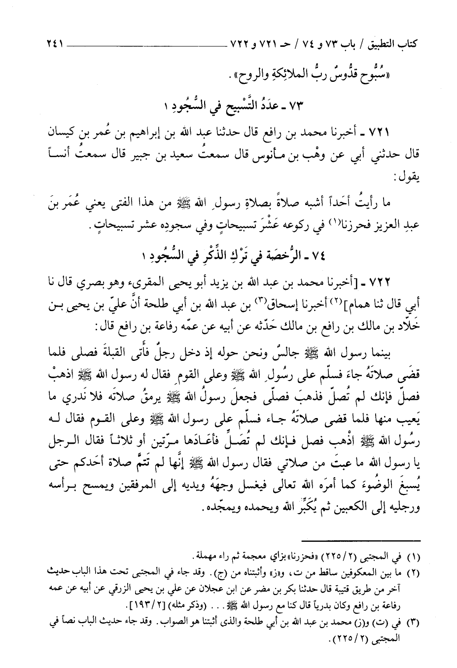 ( 74 الرخصة في ترك الذكر في السجود )
