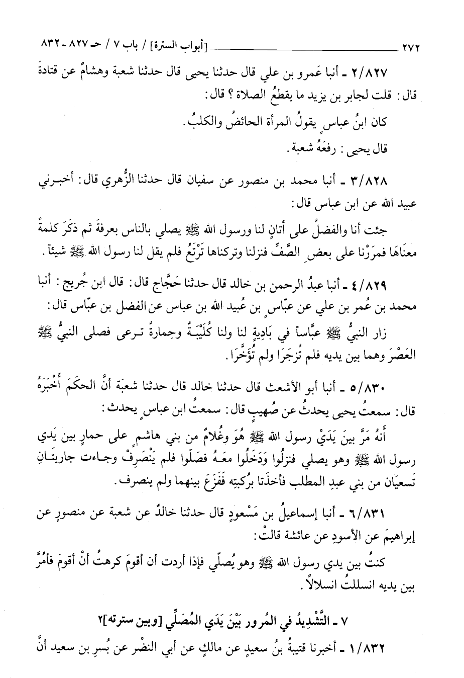 ( 7 التشديد في المرور بين يدي المصلي وبين سترته )