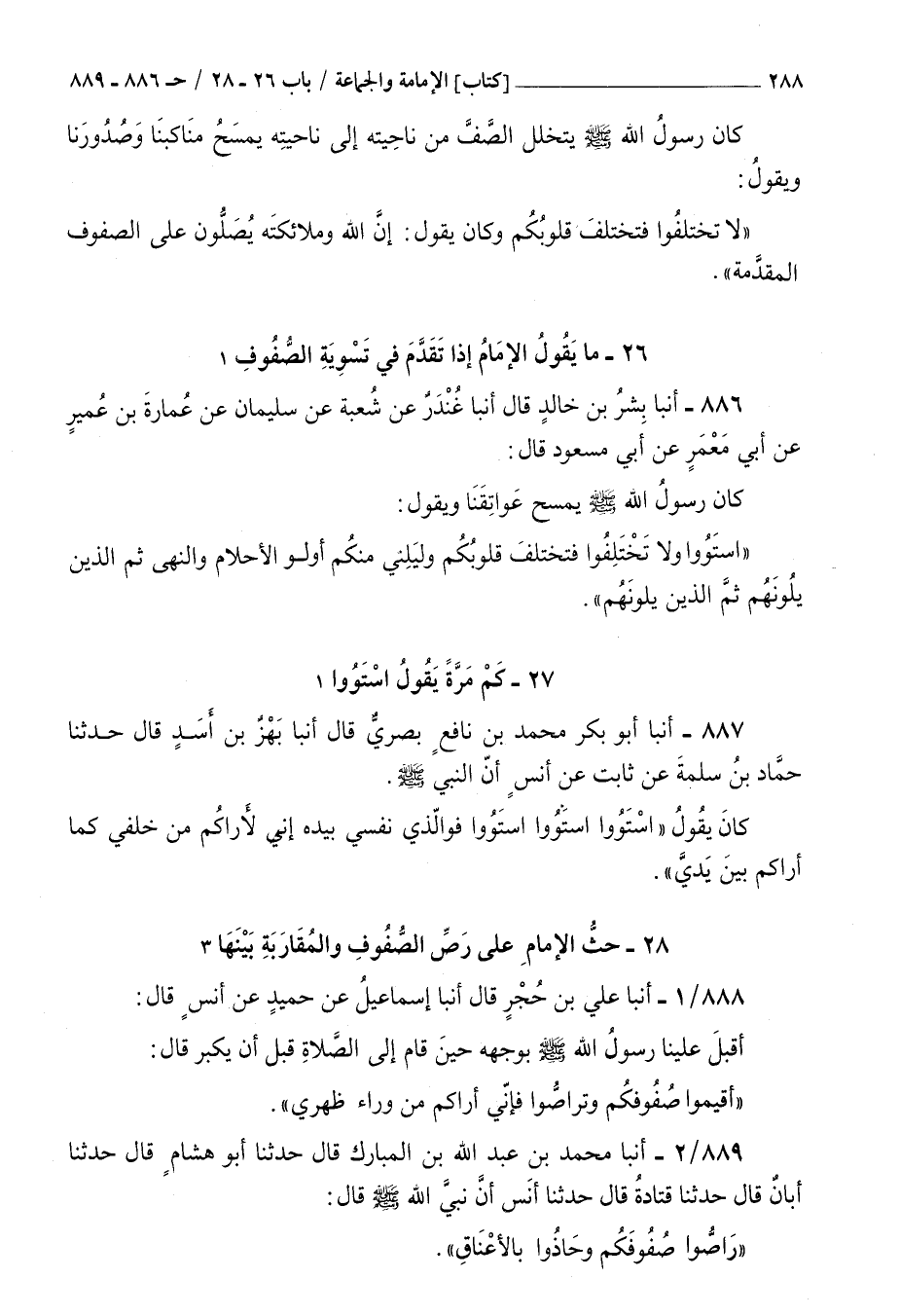 ( 28 حث الإمام على رص الصفوف والمقاربة بينها )