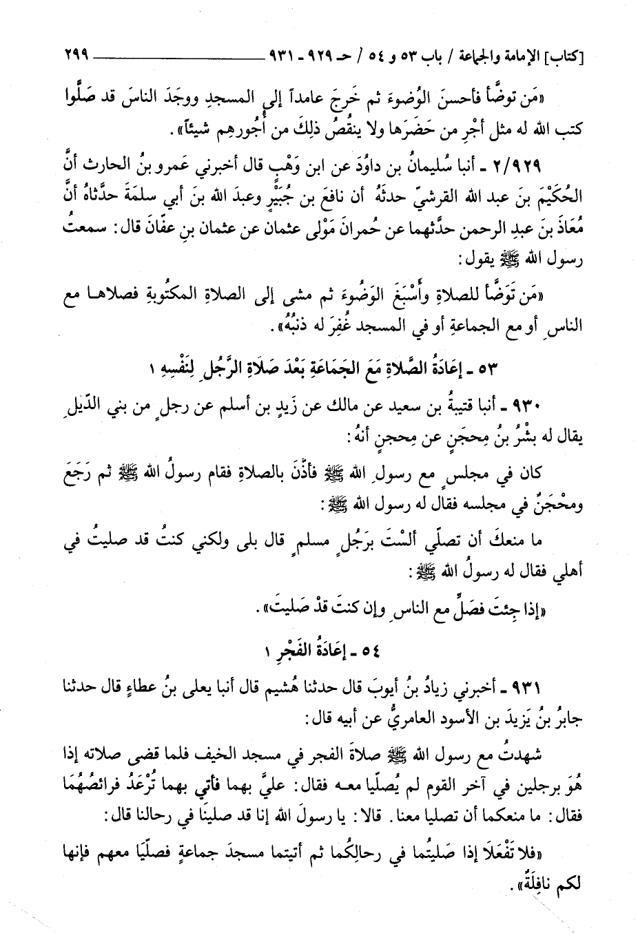 931 - أخبرني زياد بن أيوب قال حدثنا هشيم قال أنبأ يعلى بن عطاء قال حدثنا جابر بن يزيد بن الأسود العامري عن أبيه قال : شهدت مع رسول الله صلى الله عليه و سلم صلاة الفجر في مسجد الخيف فلما قضى صلاته إذا هو برجلين في آخر القوم لم يصليا معه فقال علي بهما فأتي بهما ترعد فرائصهما فقال ما منعكما أن تصليا معنا قالا يا رسول الله إنا قد صلينا في رحالنا قال فلا تفعلا إذا صليتما في رحالكما ثم أتيتما مسجد جماعة فصليا معهم فإنها لكم نافلة