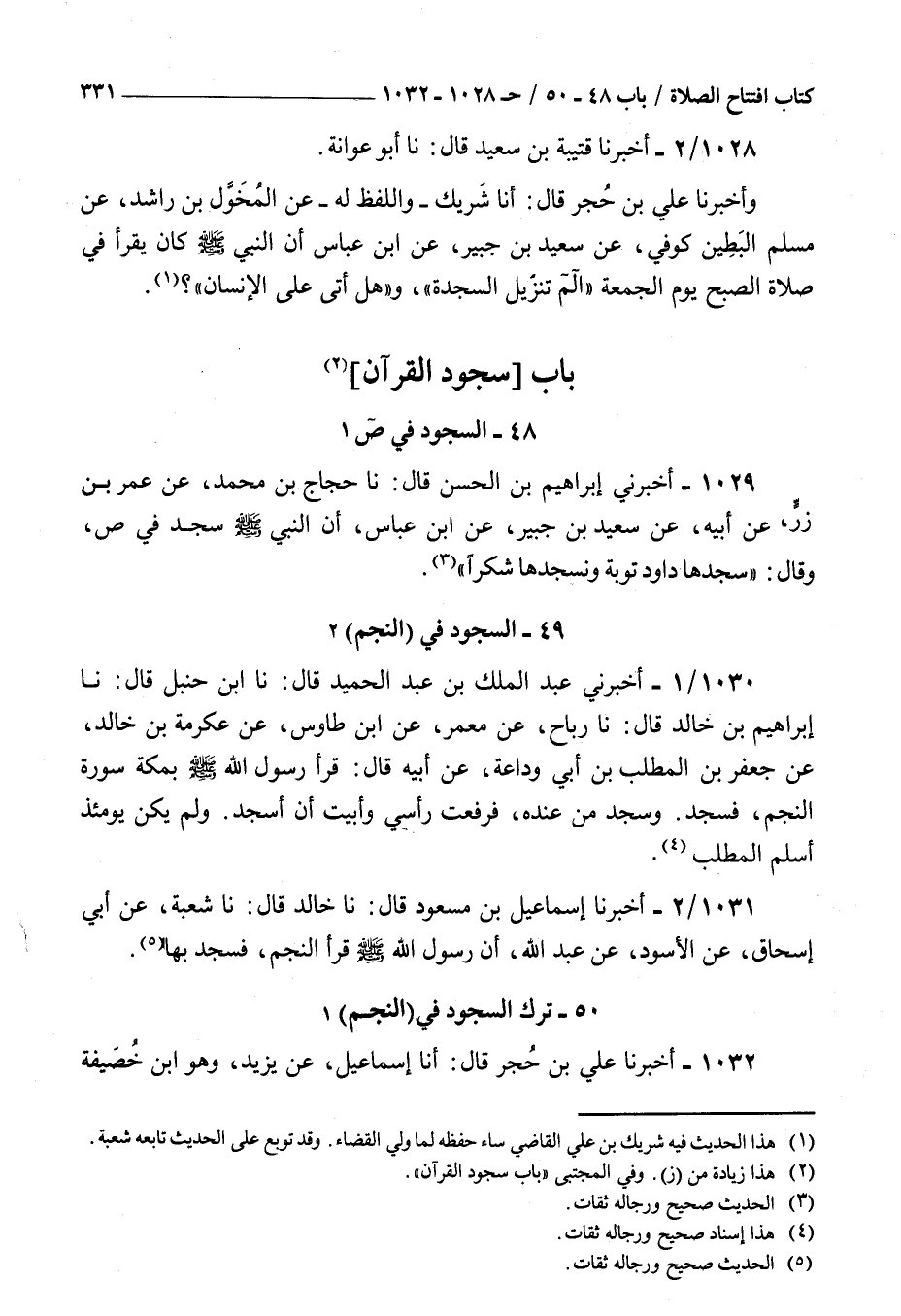 1031 - أخبرنا إسماعيل بن مسعود قال نا خالد قال نا شعبة عن أبي إسحاق عن الأسود عن عبد الله : أن رسول الله صلى الله عليه و سلم قرأ النجم فسجد بها