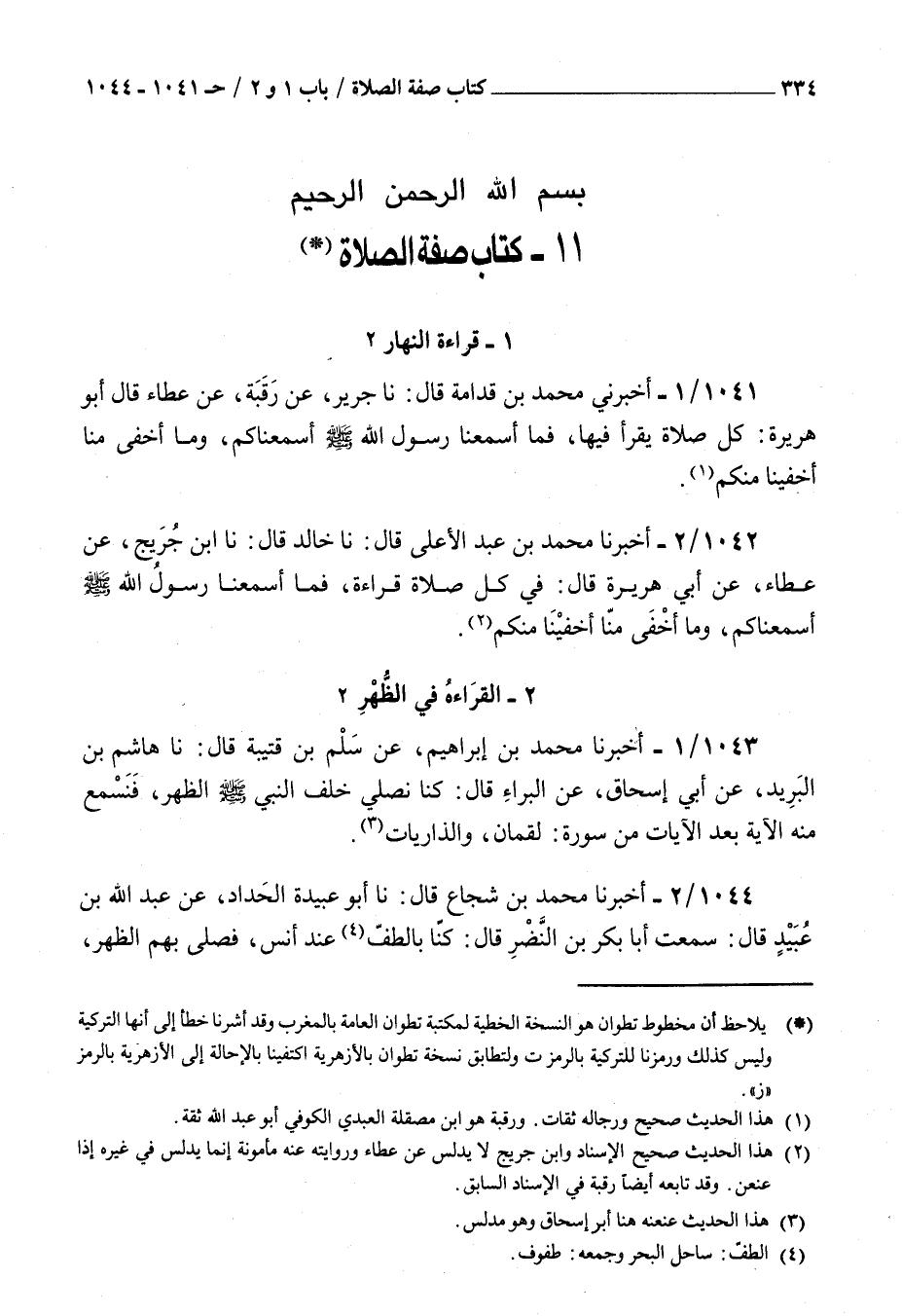 1041 - أخبرني محمد بن قدامة قال نا جرير عن رقبة عن عطاء قال أبو هريرة : كل صلاة يقرأ فيها فما أسمعنا رسول الله صلى الله عليه و سلم أسمعناكم وما أخفى منا أخفينا منكم